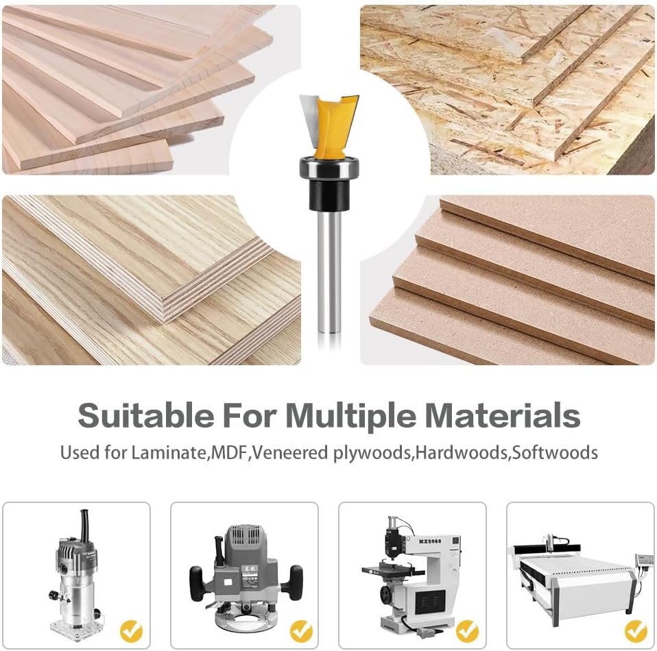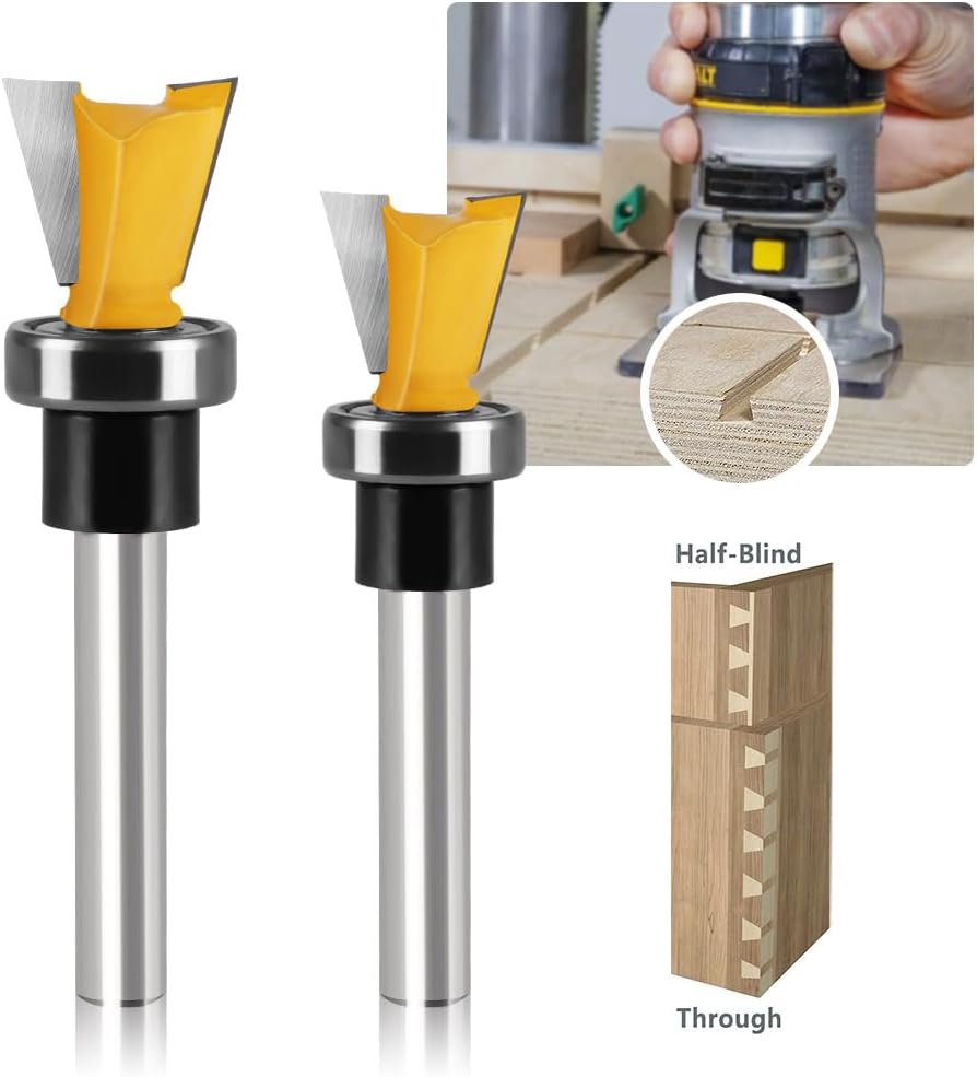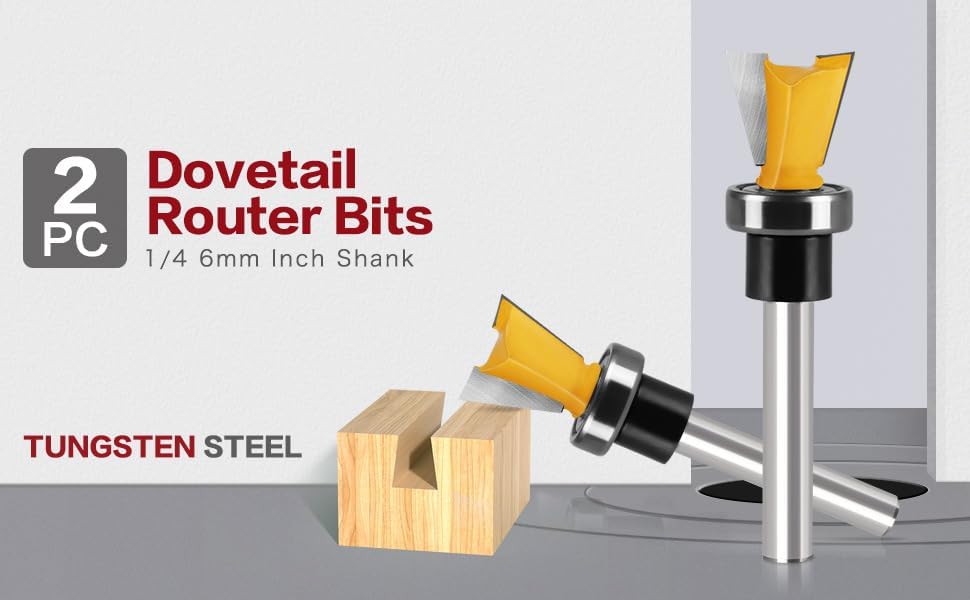 "WSOOX 1/4 Shank Dovetail Router Bit Set with Bearing