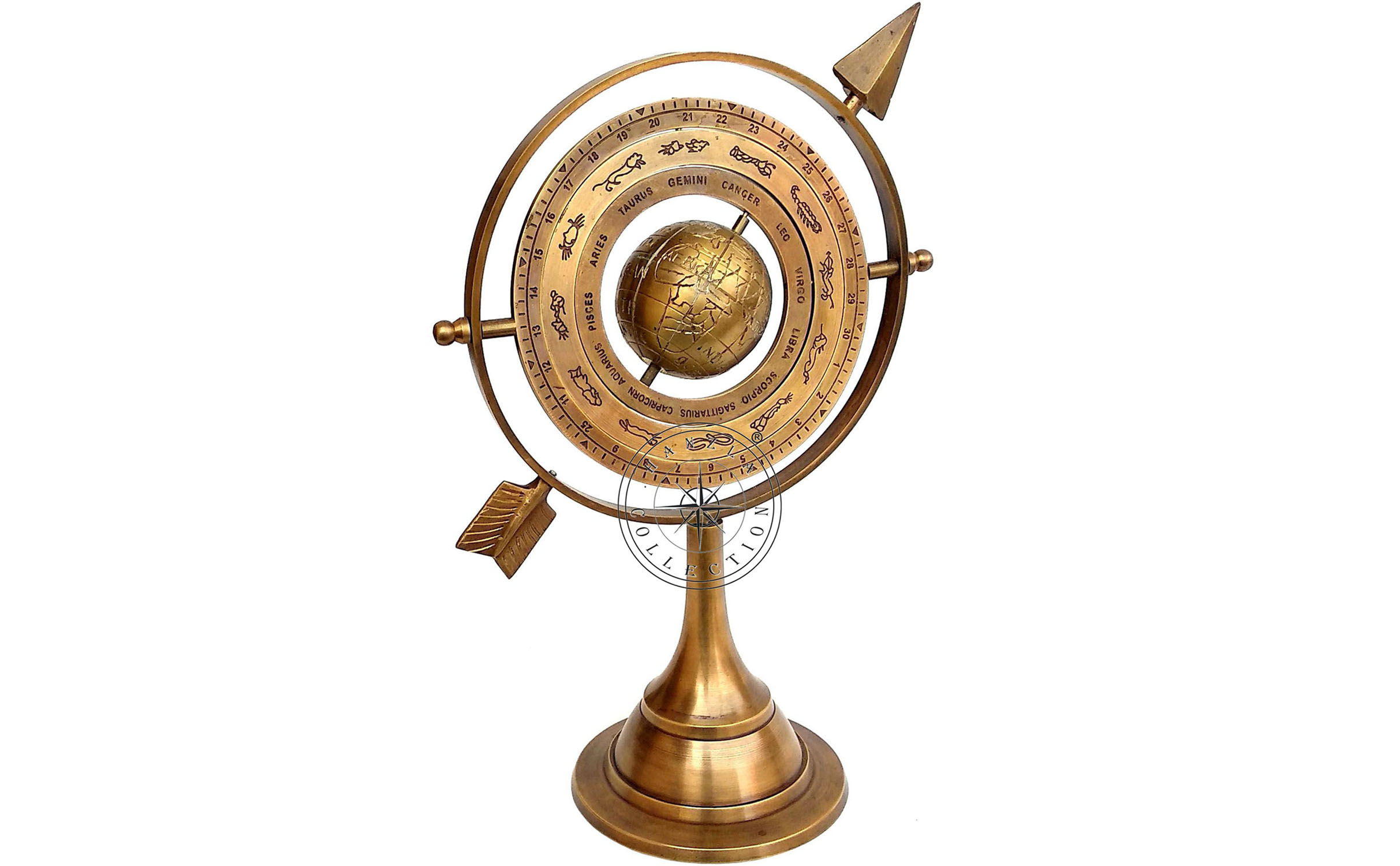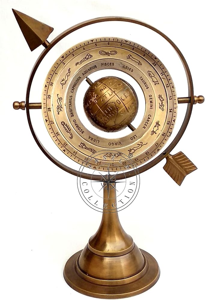 مرحبًا بكم في متجر مجموعة هانزلا - مجموعة هانزلا 27.94 سم كرة عسكرية من النحاس العتيق مع سهم شمسي 10.5 بوصة كرة أرضية منقوشة بحرية - الوصف - المادة: النحاس - اللمسة النهائية: الوزن : 750 كجم تقريبًا - قطر الحلقة الخارجية: 15.24 سم تقريبًا - قطر القاعدة: 10.24 سم تقريبًا - قطر القاعدة: 10.24 سم. تقريبًا - الارتفاع : 10.5 بوصة، 26.67 سم تقريبًا - انظر الصور للحصول على صورة حقيقية للمنتج. جميع الأعمال مصنوعة يدويًا. هذا منتج معاد تصنيعه، لا يباع كمنتج عتيق. قطعة جيدة من التشكيلة. أفضل هدية. مفيد في وقت السفر. يرجى زيارة متجرنا والتحقق من المزيد من المنتجات الجميلة.