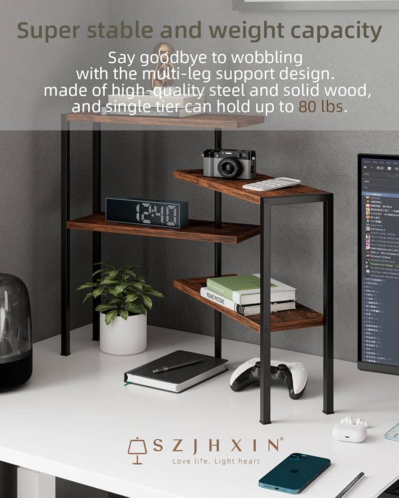 يمكن لرف الزاوية المكون من 4 طبقات ضبط التكوين ليكون شكل مثلث أو مستطيل. إنه ليس رائعًا للزوايا فحسب، بل يمكنه أيضًا الوقوف على سطح الطاولة بشكل متين
