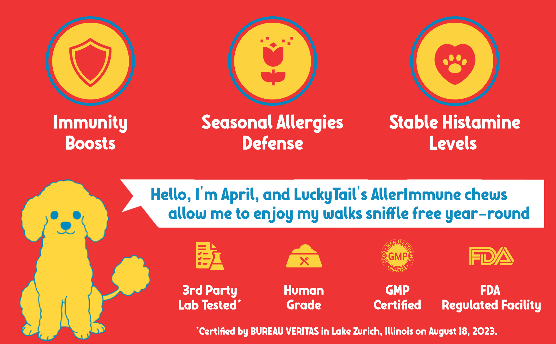 مزيج البروبيوتيك 6: يتكون مزيج البروبيوتيك 6 من LuckyTail من L - Plantarum وL. Acidophilus وL. Casei وB. Bifidum وL. Lactis وL. Fermentum، مما يساعد على بناء جهاز المناعة ويعزز صحة الأمعاء. للكلاب.