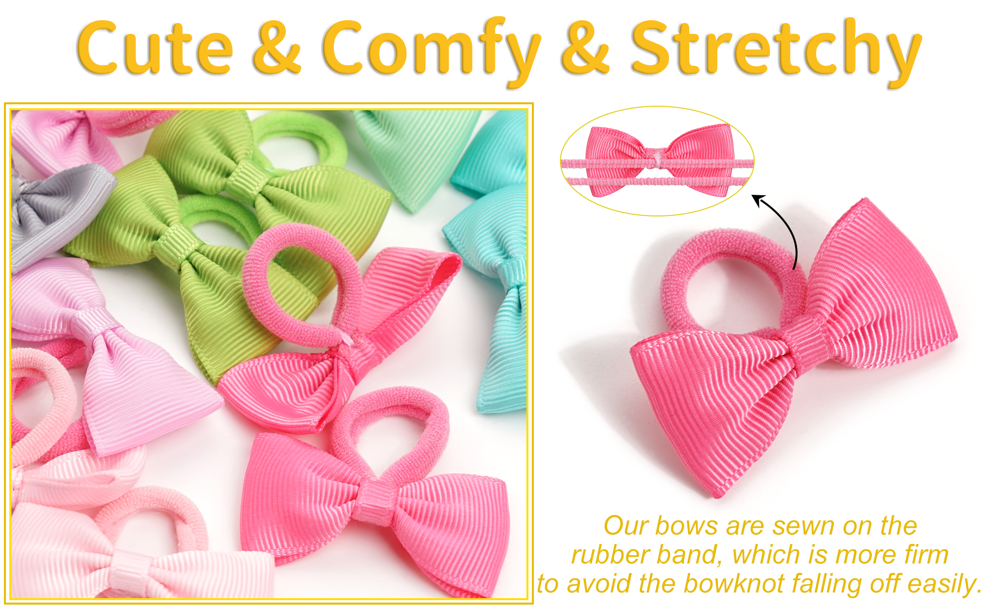 ربطات الشعر المرنة الصغيرة مع القوس مصنوعة من مواد ناعمة عالية الجودة مع تصميم سلس وملمس جيد، ليس من السهل فقدانها أو كسرها أو تمددها، ويمكنها حماية شعر طفلك. إنه سهل الاستخدام والإزالة.