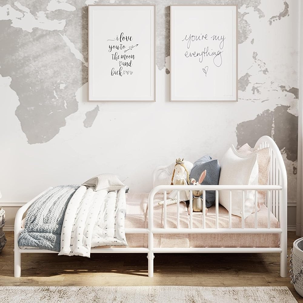 لقد حان الوقت لكي يخطو طفلك الصغير إلى المرحلة التالية من النمو، ويساعدهم سرير الأطفال المعدني المعاصر هذا على الانتقال بسهولة مع ارتفاع منصة منخفض يسمح لهم بالقفز داخل وخارج السرير دون أي مشكلة، لقد حان الوقت لطفلك الصغير أو فتاتك للدخول إلى المرحلة التالية من النمو، ويساعدهم سرير الأطفال المعدني المعاصر هذا على الانتقال بسهولة مع ارتفاع منصة منخفض يسمح لهم بالقفز والخروج من السرير دون دون أي مشكلة