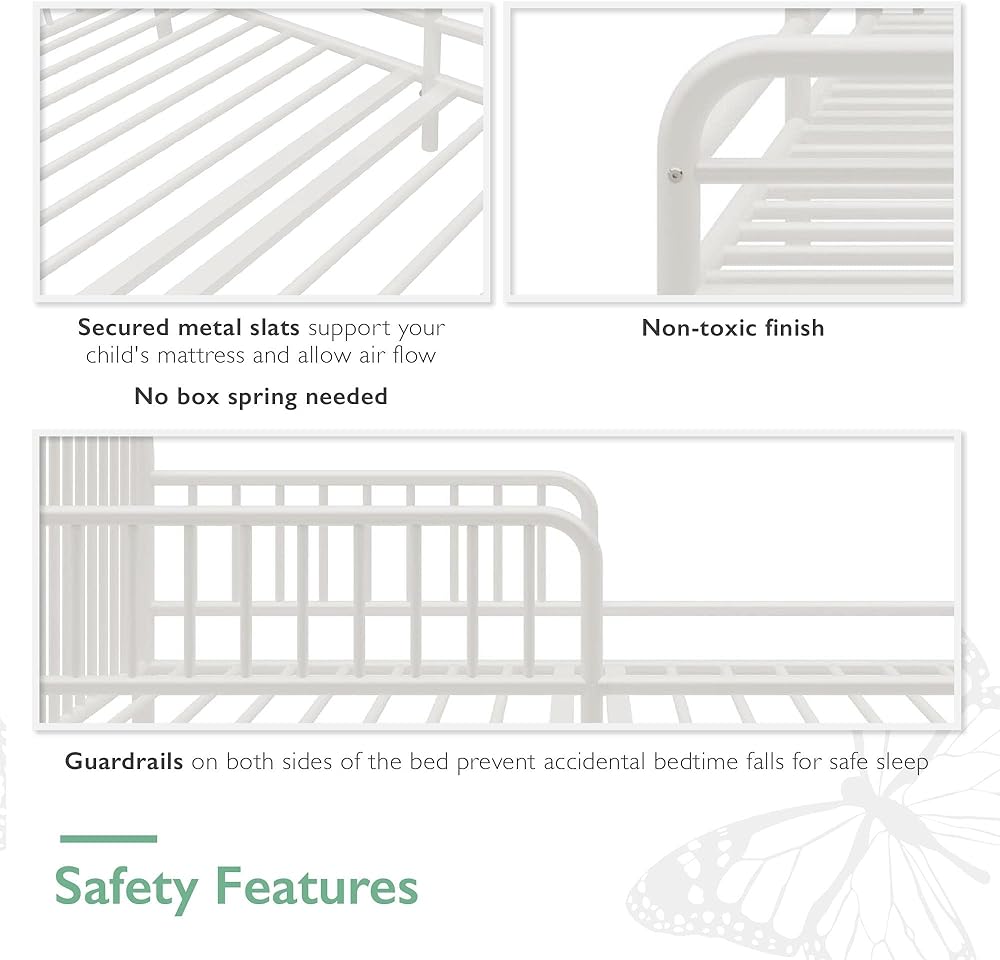 مصممة بلوح أمامي مبطن نظيف ولوح قدم، تمنع قضبان الحماية المدمجة طفلك من السقوط بينما يوفر الإطار المعدني المتين والقضبان المحيطة والساقين المركزية والشرائح المعدنية الدعم لسرير طفلك ومرتبة سرير الأطفال الصغار (يباع المنتج بشكل منفصل)، مصممة بلوحة أمامية مبطنة نظيفة ولوح قدم، تمنع قضبان الحماية المدمجة طفلك من السقوط بينما يوفر الإطار المعدني المتين والقضبان المحيطة والساقين المركزية والشرائح المعدنية الدعم مرتبة سرير للأطفال الصغار (يُباع المنتج بشكل منفصل)