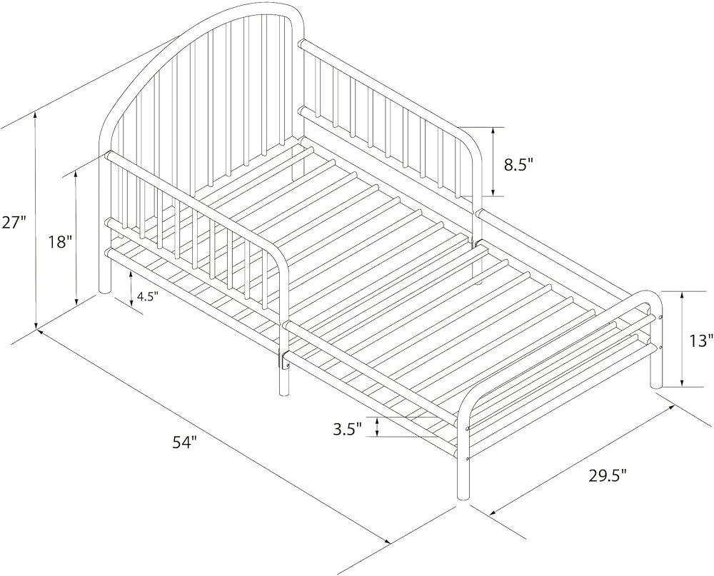 صُنع سرير الأطفال ليتل سييدز River Metal للأطفال الصغار من الأولاد والبنات الذين يرغبون في الخروج من أسرة الأطفال الخاصة بهم والانتقال إلى مساحة الكبار الخاصة بهم، وهو قطعة انتقالية مثالية لغرفة نوم الأطفال تمنح الآباء راحة البال مع منح الأطفال القليل من الاستقلالية مع ارتفاع منخفض يجعل من السهل الصعود إلى السرير والخروج منه دون مساعدة اليد. يتميز بلوح أمامي منحني كلاسيكي مع شرائح أنبوبية عمودية ولوح قدم منخفض المستوى وقضبان أمان دائرية مزدوجة الجوانب تضمن عدم سقوط طفلك من السرير عن طريق الخطأ. بالإضافة إلى ذلك، فإن القاعدة المعدنية الداعمة ذات الشرائح والأرجل المركزية والقضبان المحيطة على إطار المنصة المعدنية القوية ستحافظ دائمًا على مرتبة طفلك ثابتة حتى لا تغرق أو تنزلق (سرير الأطفال ذو الحجم القياسي ومرتبة سرير الأطفال غير متضمنة). معتمد من جيه بي ام ايه بلمسة نهائية غير سامة، سرير ريفر آمن للأطفال الصغار يلبي جميع متطلبات الجمعية الأمريكية لاختبار المواد ولجنة سلامة المنتجات الاستهلاكية. عرض أيدي الأطفال، من هو مستعد لسرير الأطفال الكبير؟