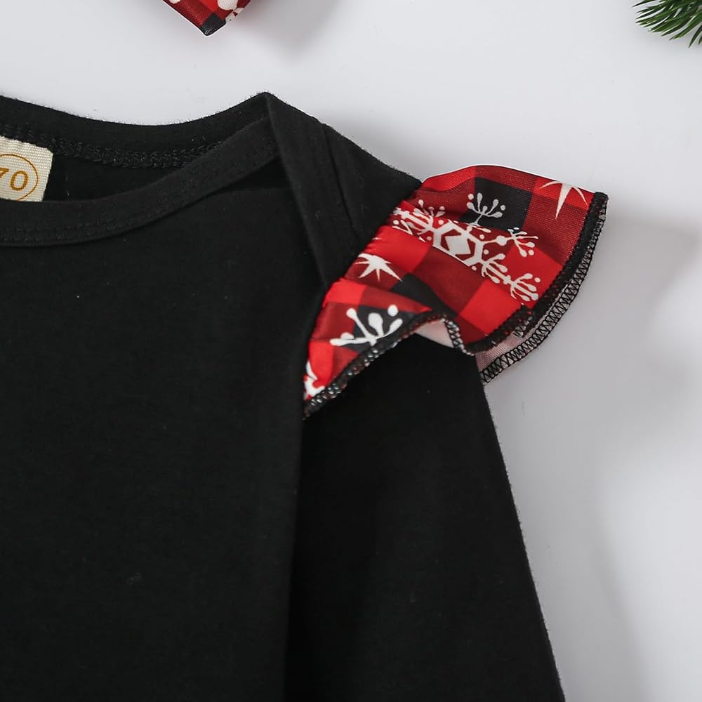 🎅التصميم: ملابس للفتيات الصغيرات لعيد الميلاد، رقبة دائرية، تتماشى مع ندفة الثلج، وتنورة مكشكشة بطباعة شبكة الجاموس وعصابة رأس، جميلة ولطيفة. بدلة عيد الميلاد الأولى الخاصة بي، مناسبة لمجموعة ملابس الخريف والشتاء للأطفال حديثي الولادة. هذا ملفت للنظر حقًا عندما طفلك الصغير يرتدي هذه الملابس الجميلة.