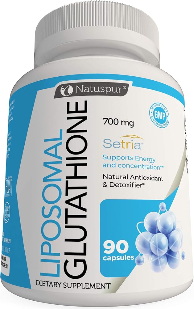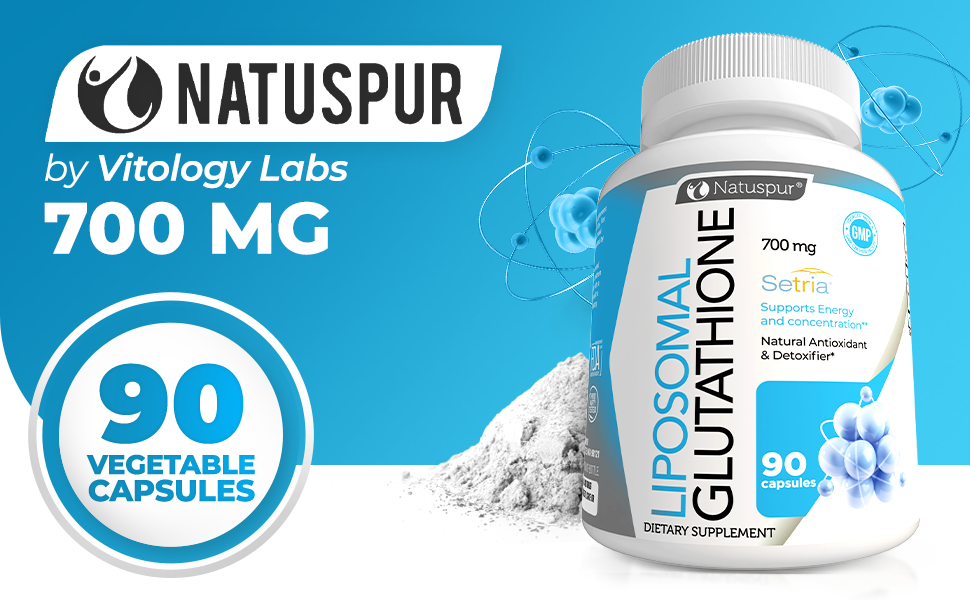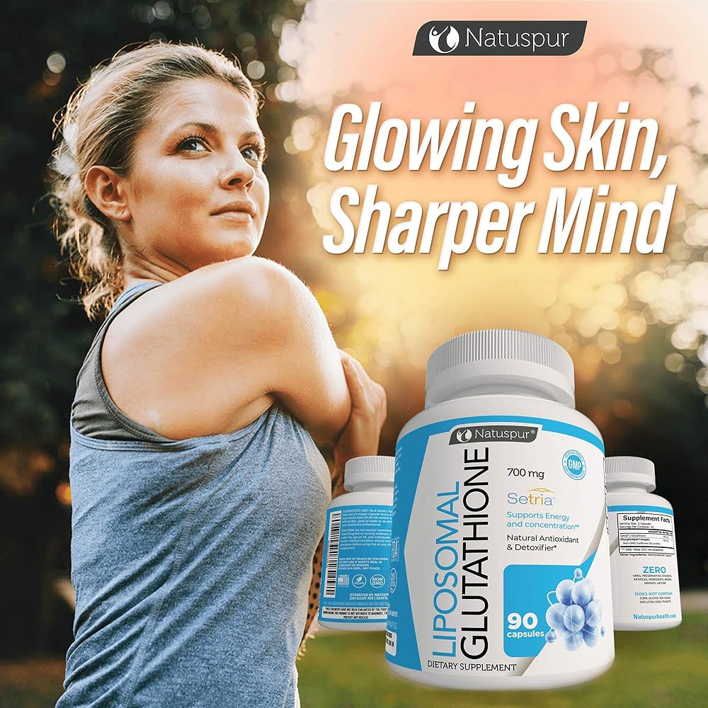 كبسولات Natuspur Liposomal الجلوتاثيون - 1000 مجم مكمل الجلوتاثيون النقي المخفض من سيتريا مع مركب الفوسفوليبيد لتنظيف السموم من الكبد ودعم المناعة - غير معدل وراثيًا وخالي من الغلوتين (90 كبسولة)