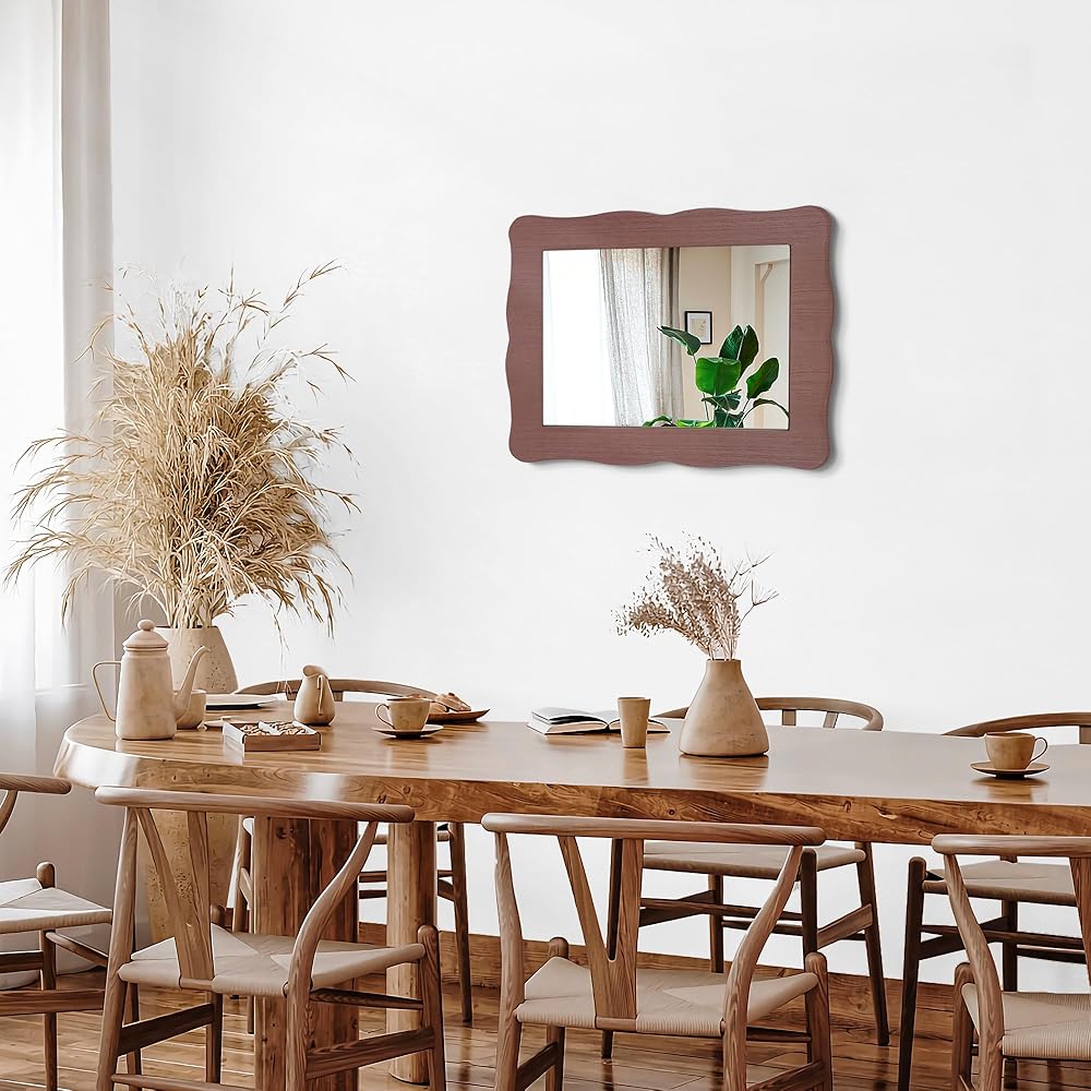 Unique Wave Design: Wood mirror decorations is designed with irregular wave design, its unique wave shape effortlessly combines utility and aesthetics offering the perfect final touch to complete your home.