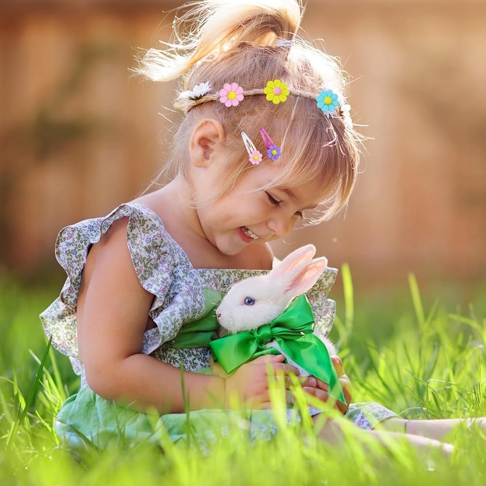 PinkSheep Flower Hair Clips and Hair Ties for Toddler Baby Girls 20PCS Cute Hair Clips Metal Snap Barrettes Sparkly Ties Soft Rubber Bands Colorful For Baby Girl
