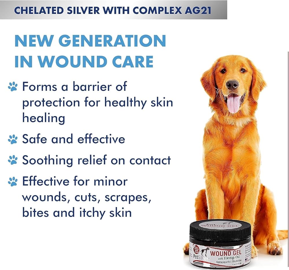 PetSilver Wound Gel هو الجيل الجديد في مجال العناية بالجروح مع مركب AG21. يدعم الشفاء لجميع الحيوانات كبيرة كانت أم صغيرة. يخلق جل الجروح هذا طبقة واقية فوق الجزء العلوي من مناطق الجروح والسحجات والتمزقات والبقع الساخنة والحروق والطفح الجلدي والمزيد. غير لاذعة وغير سامة. يُستخدم لدعم عملية الشفاء الصحية وأوقات التعافي.