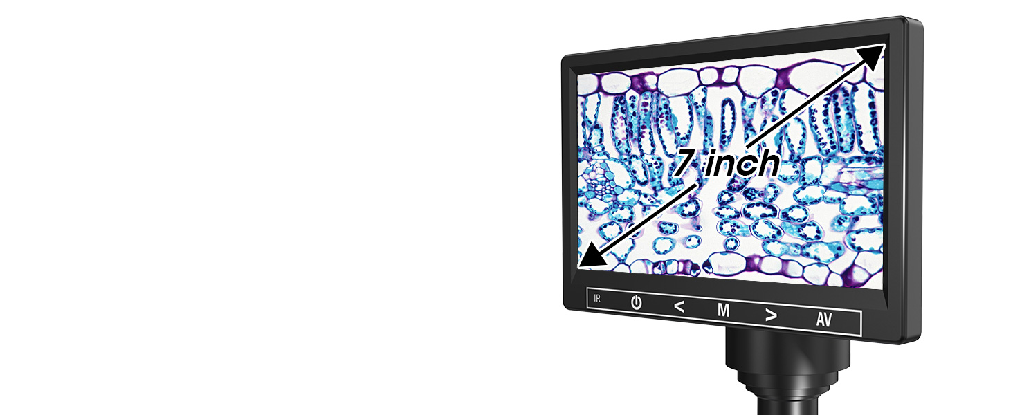 شاشة LCD مقاس 7 بوصات متضمنة: يتميز هذا المجهر بكاميرا غير قابلة للإزالة بدقة 5 ميجابكسل، ويتضمن بطاقة التقاط فيديو وبرامج متوافقة مع Windows/Mac لالتقاط الصور والفيديو.