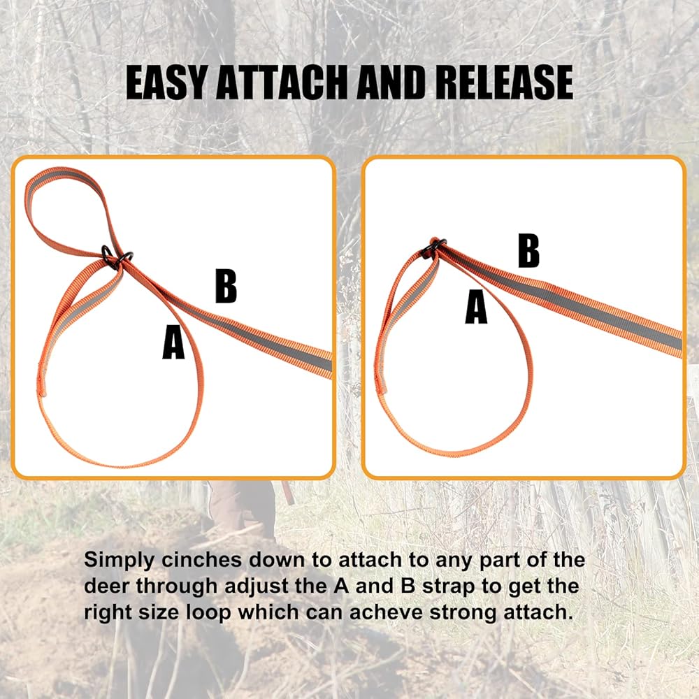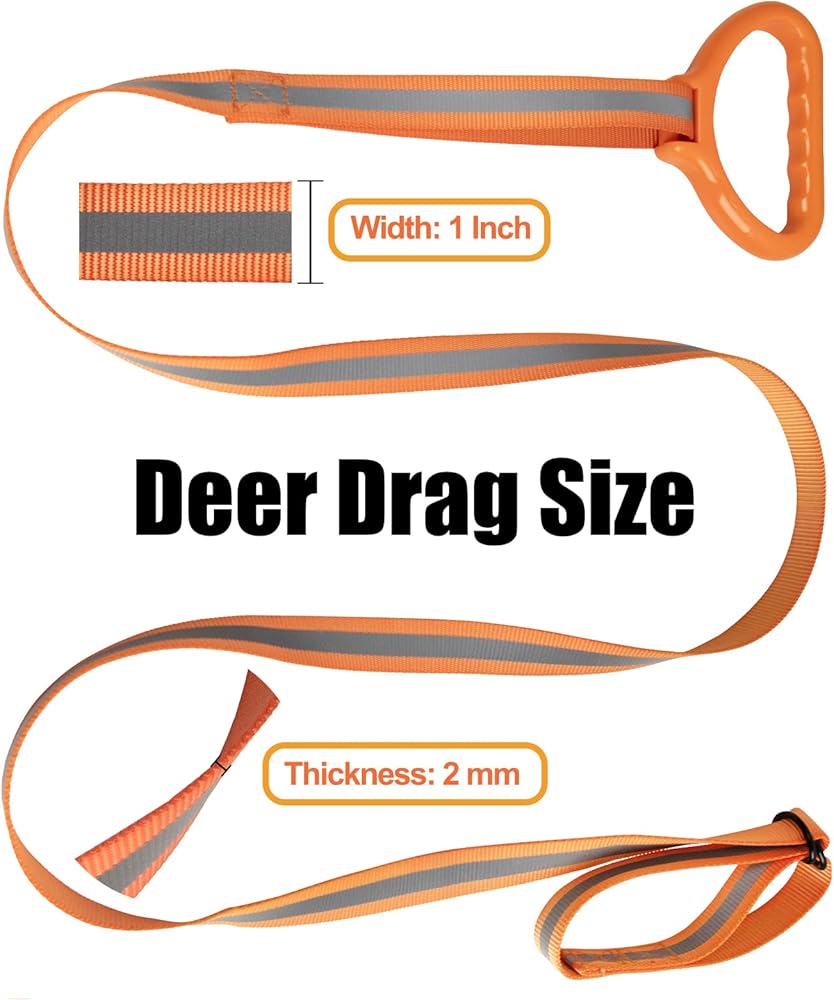 Durable Reflective Webbing: Designed with reflective material, increasing the safety and visibility, the webbing of deer drag (width: 1 inch * thickness: 1 mm) have plenty of durability.