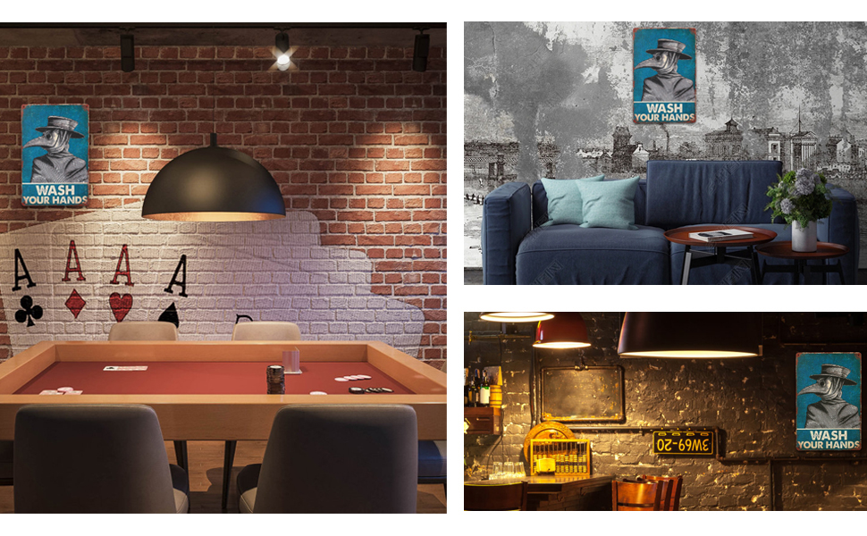 This sign is suitable for bathrooms, toilets and other places to remind people to wash their hands.The surface of the tin painting uses a special retro design, but the surface is smooth, which adds a sense of retro,the product is completely new.