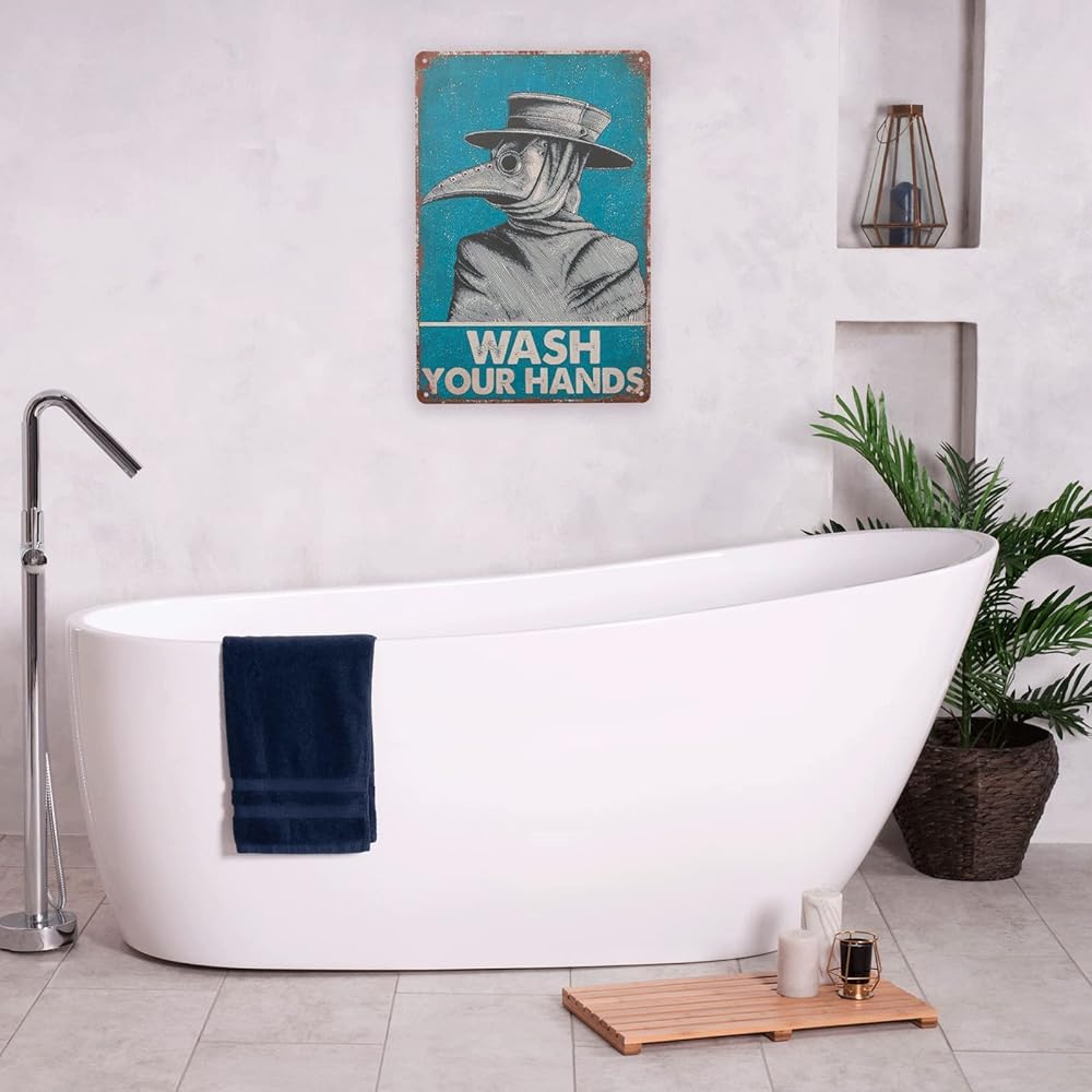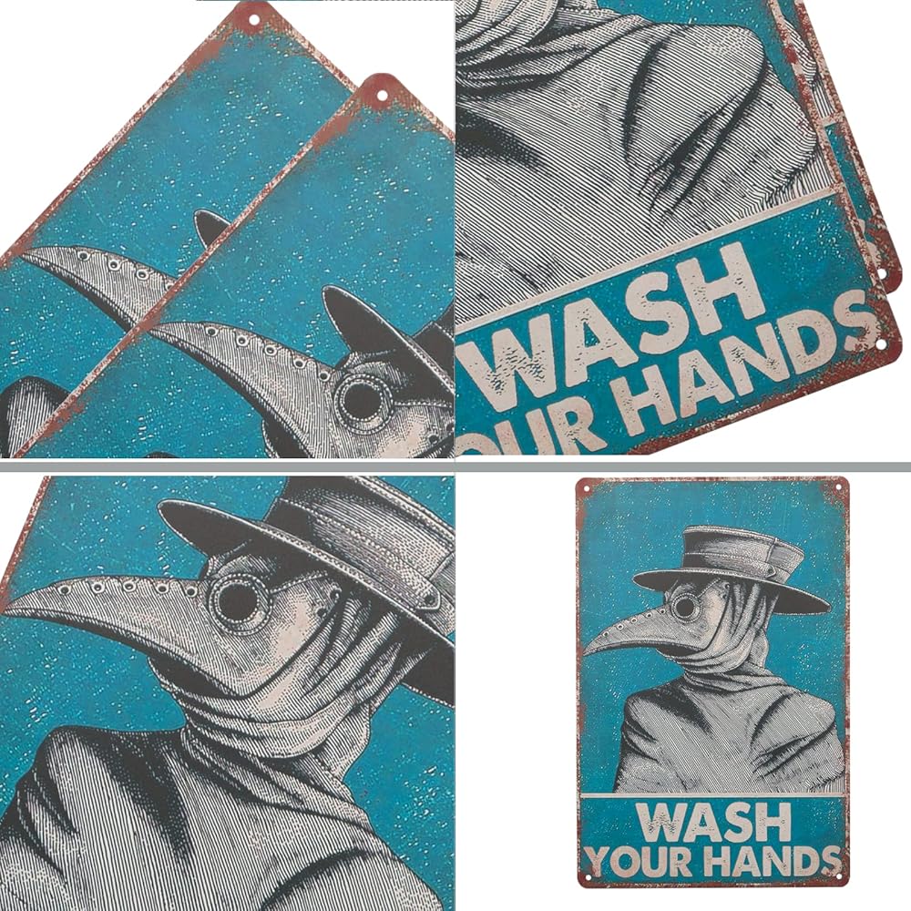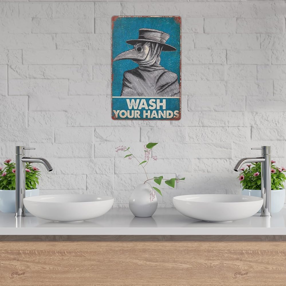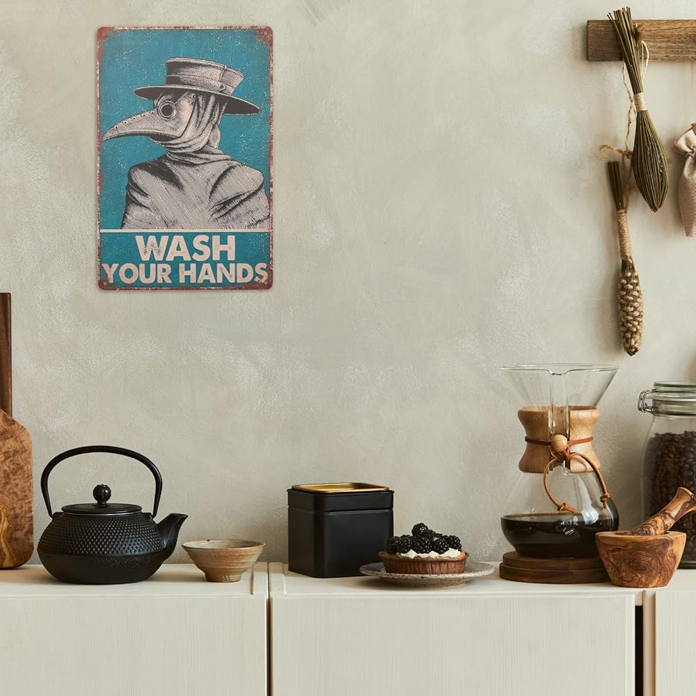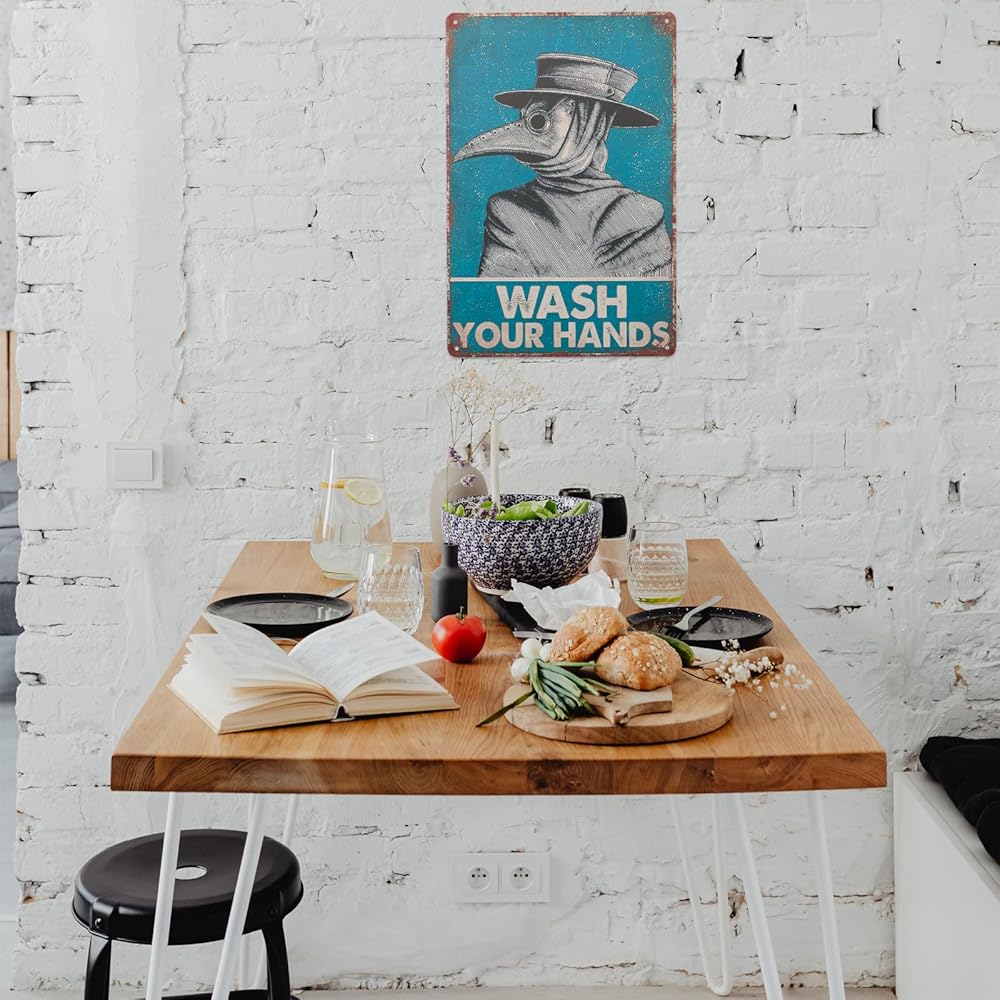 لافتة فينتاج من القصدير من اكس بي ديسينز مطبوع عليها عبارة «Wash Your Hand Plague Doctor» وطبيب الطاعون لديكور الحائط، ديكور للمنزل/ هدايا العشاق/ ديكور الحائط/ لافتة فنية لديكور حائط الضيوف مقاس 8 ×