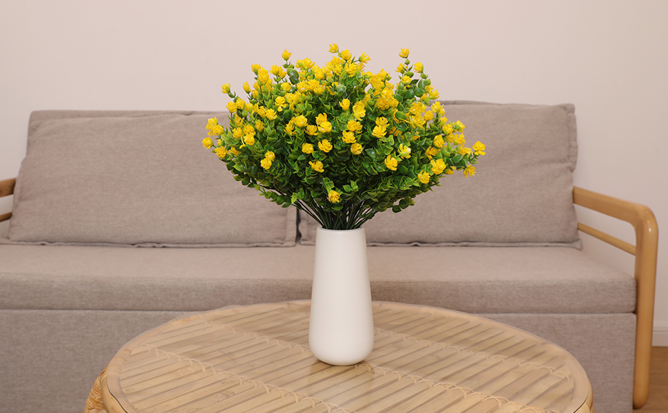 تحتوي هذه العبوة على 16 حزمة من الزهور الصناعية الصفراء، المزهرية غير متضمنة.