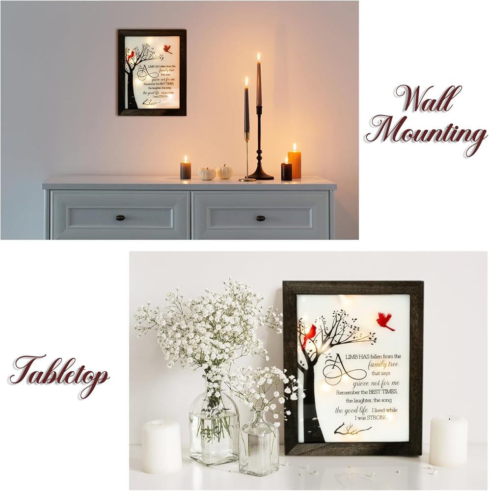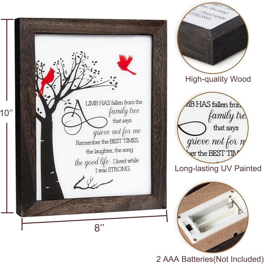 مصباح LED مدمج: لا يلزم التجميع. عندما تنفد طاقة بطارية خلية العملات المعدنية CR2032، يمكن استبدالها بسهولة. قم بتدفئة القلب وأضيء الظلام مع صندوق الظل التذكاري هذا لشخص مميز يعاني من فقدان والدته أو أبيه أو زوجه أو أصدقائه أو زملائه أو جدته أو جدته أو ابنه أو ابنته أو أي شخص يحبه.