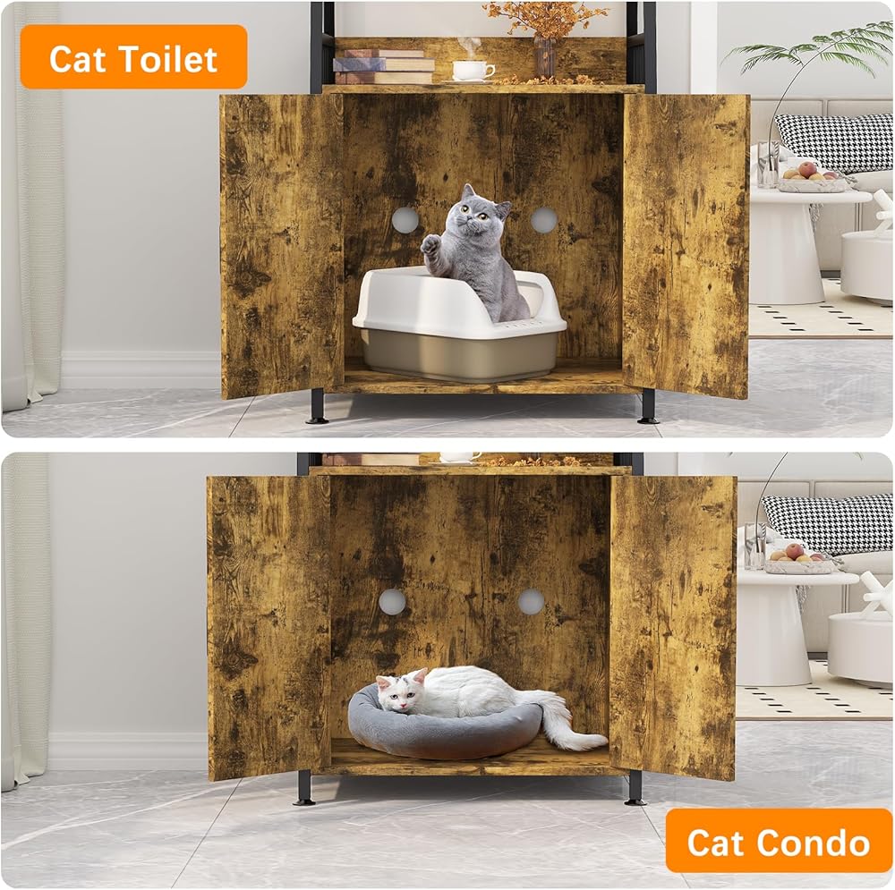 حاوية صندوق فضلات القطط المخفي: صندوق فضلات القطط السفلي ذو الباب المزدوج بمساحة كبيرة: 22 انش طول × 16.7 انش عرض × 18.7 انش ارتفاع، يحتفظ بمساحة أكثر خصوصية للقطط مع إخفاء الروائح بفعالية؛ بيت القطط الجانبي 9.6 × 16.7 × 18.8 انش، يسمح لحيوانك الأليف الجميل بحرية الحركة والاستمتاع بوقت سعيد.