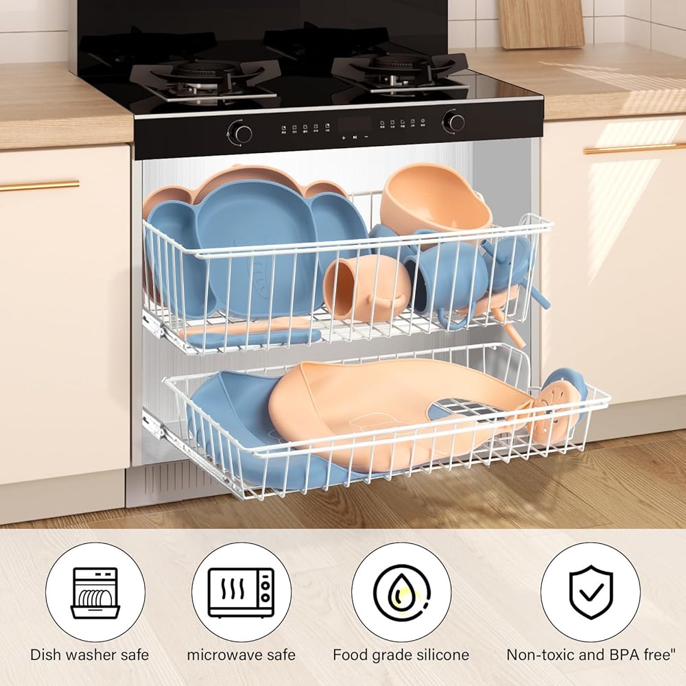 【SAFE FOR YOUR BABY】Our baby eating supplies are made of food grade silicone, which is free of BPA, PVC, phthalates, and lead. The soft and flexible material has no sharp edges, making it gentle on baby gums and teeth.You can rest assured that our products are safe to choose for your kids.