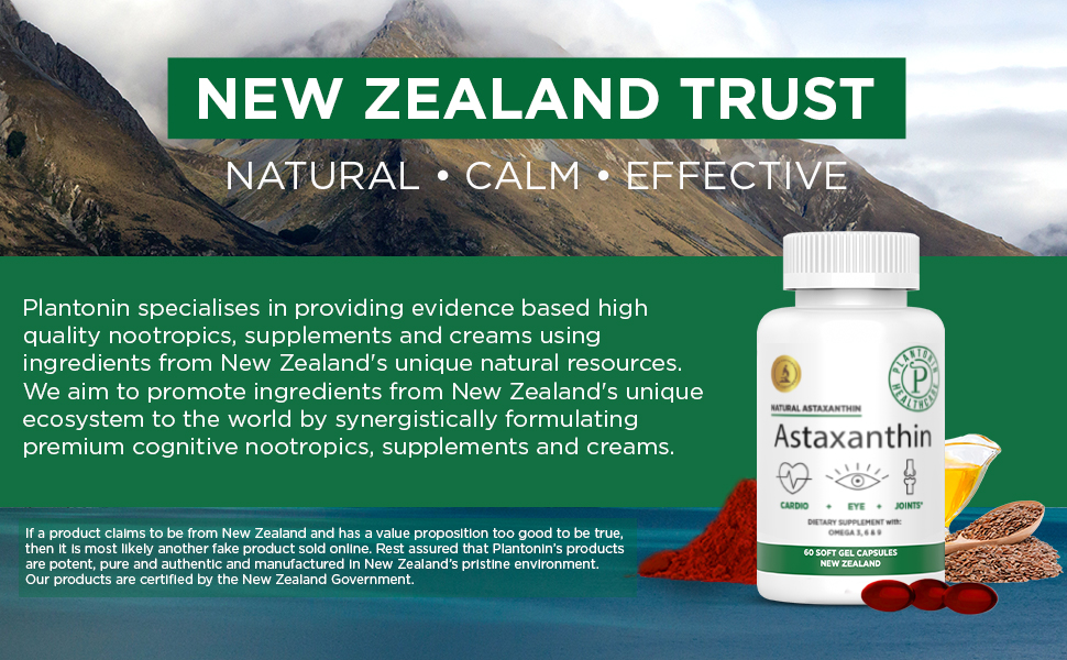 GENUINE NATURAL ASTAXANTHIN FROM NEW ZEALAND: Our astaxanthin is 100% Non-GMO microalgae naturally grown in New Zealand with natural sunshine, unpolluted coastal air and mountain spring water. Astaxanthin of algae that originates from Haematococcus pluvialis, is a microalgae that produces a protective antioxidant in response to light or other environmental stresses that supports the body's natural oxidative defences against free radicals.