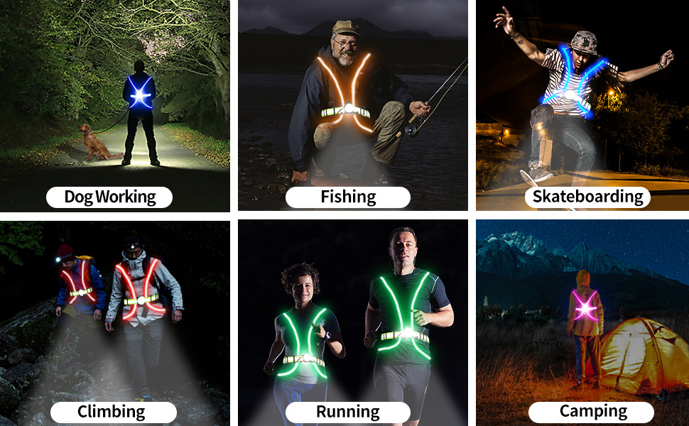 The Led reflective vest through flexible fiber optic cables and 3M reflector chest belts cover the shoulders, chest, waist and back which provide 360°protection. Find you in any light condition.