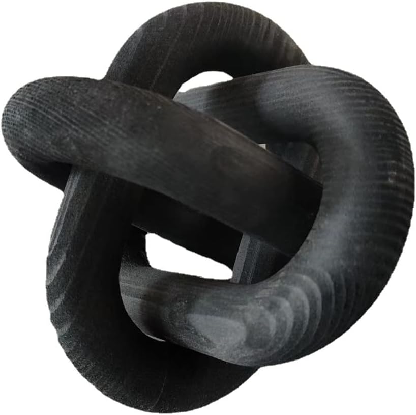 سلسلة خشبية للديكور بـ3 حلقات بقطر 6 انش، ديكور عقدة، قطعة ديكور منحوتة يدويا بلون اسود/ خشبي، طاولة القهوة، ديكور سلسلة ريفية، هدايا الام