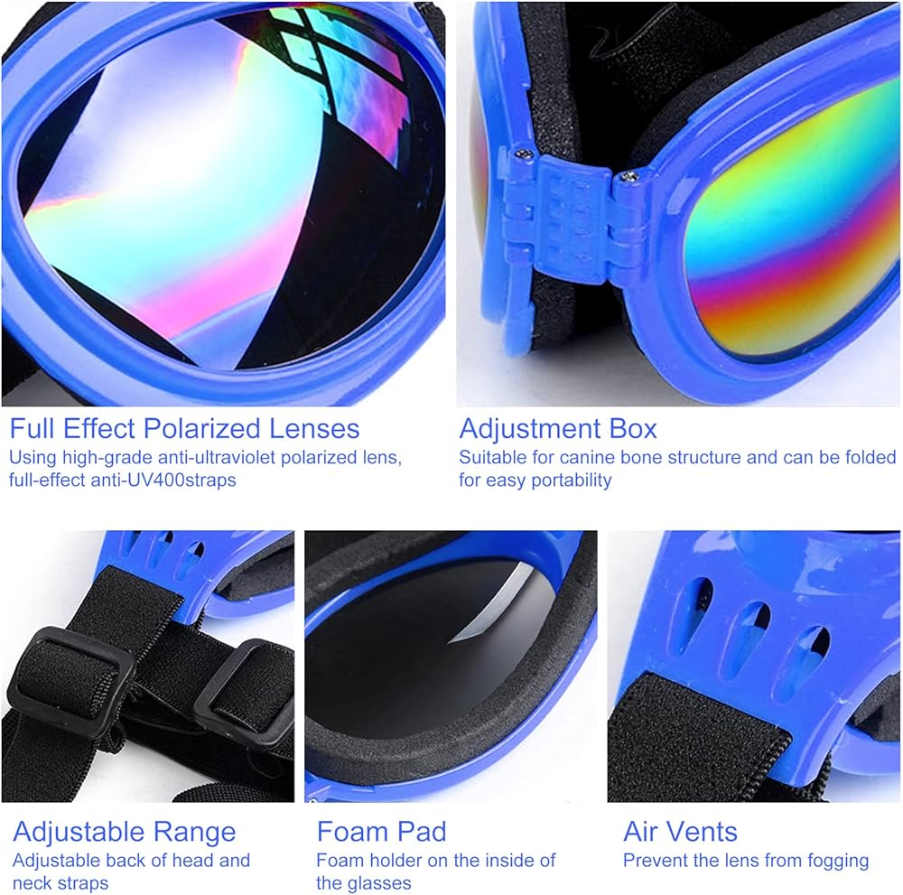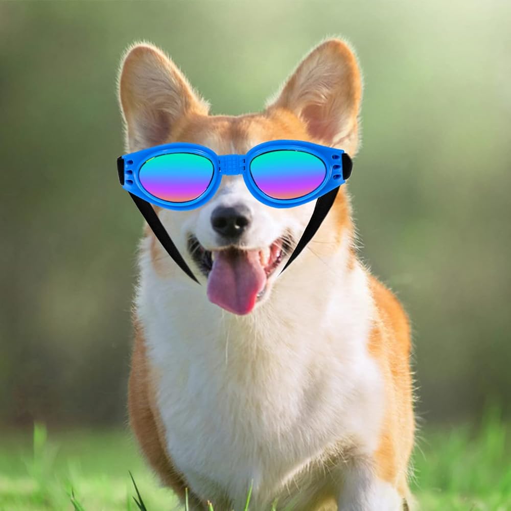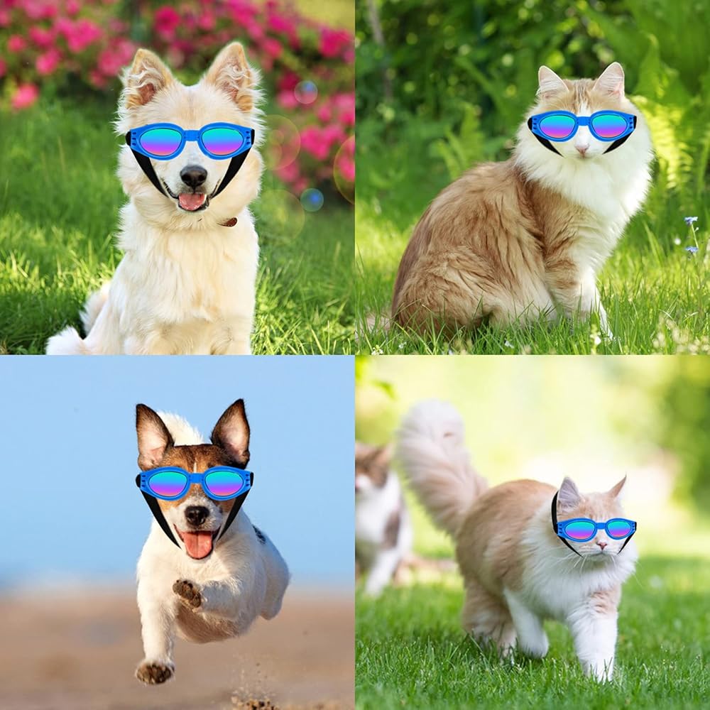 نظارات شمسية للكلاب، نظارات شمسية قابلة للتعديل للحماية من الاشعة فوق البنفسجية، حماية عين الكلب للخروج والسفر والتزلج والسباحة