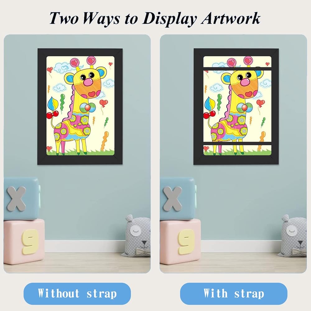 🍓【خامة عالية الجودة】إطارات فنية للأطفال مصنوعة من صفائح أكريليك لامعة عالية الجودة ومواد MDF صديقة للبيئة، والتي توفر رؤية واضحة وأجواء فنية للعمل الفني. يتيح لك عرض الأعمال الفنية والصور بأفضل طريقة ممكنة.