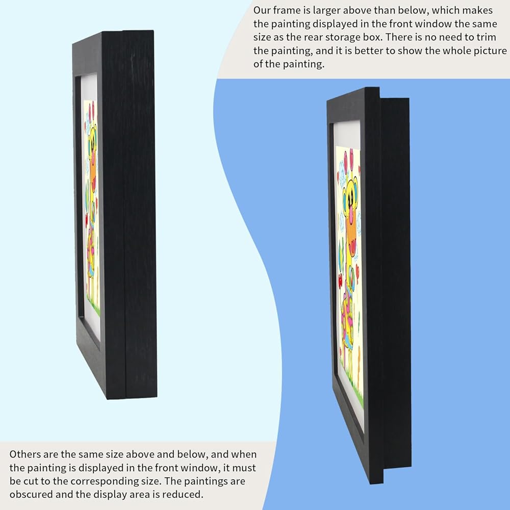 🍓【تطبيقات متعددة】إطارات الصور ذات الفتح الأمامي للأعمال الفنية للأطفال مناسبة لعرض لوحات الأطفال أو الصور أو البطاقات البريدية أو دفاتر القصاصات أو تذاكر الحفلات الموسيقية أو المقتنيات أو أي هدايا تذكارية. سجل كل لحظة دافئة بشكل مثالي، واخلق جوًا عائليًا جيدًا.
