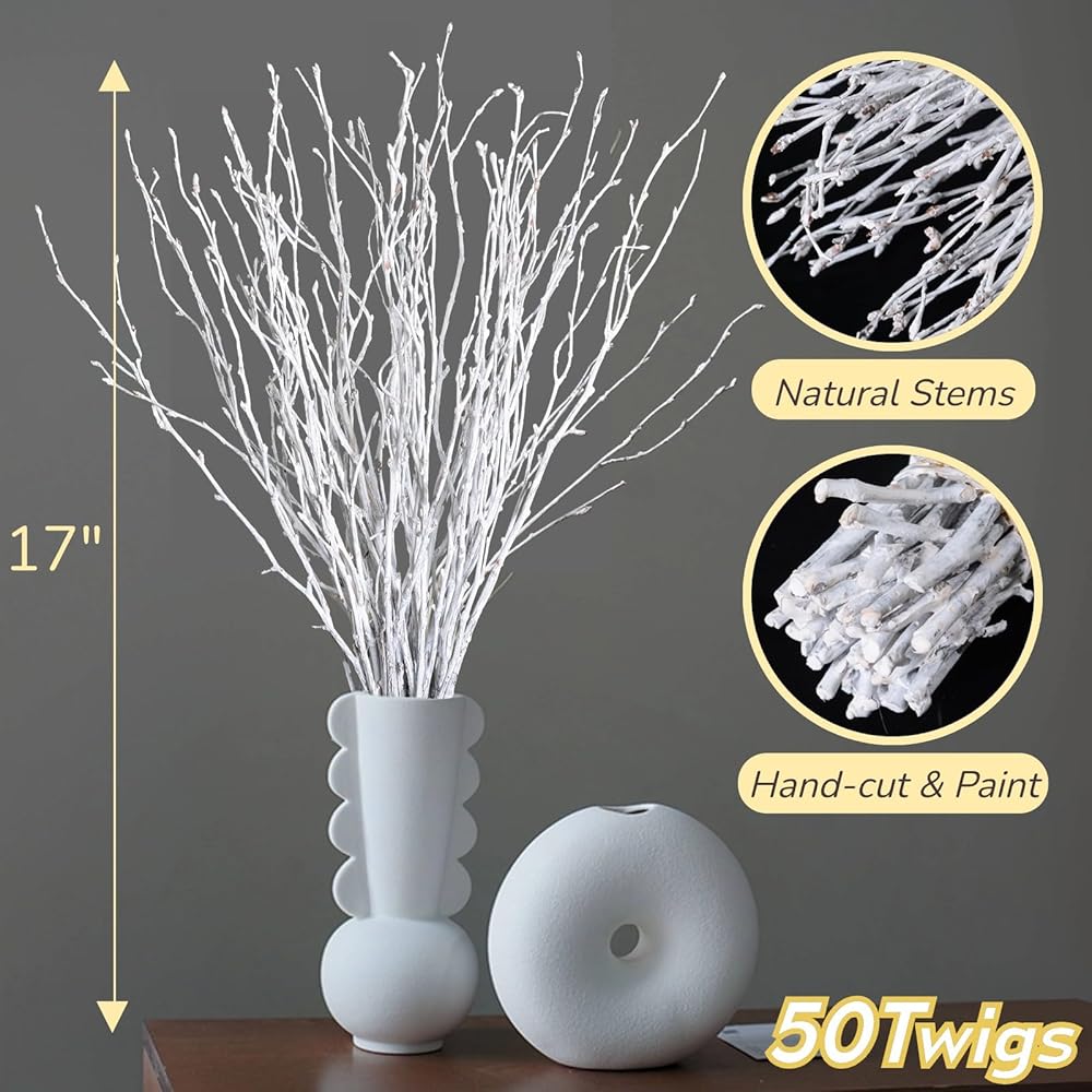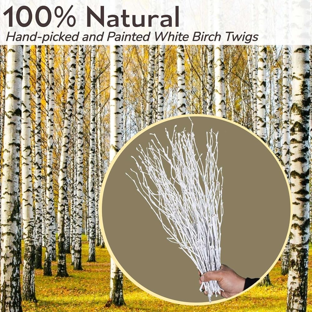 50 قطعة من اغصان البتولا البيضاء المجففة الحقيقية - فروع البتولا الطبيعية 17 انش لملء مزهريات الكريسماس، عصي البتولا للحرف اليدوية، قطعة مركزية، ترتيب الزهور، اكليل غصين، ديكور منزلي ريفي