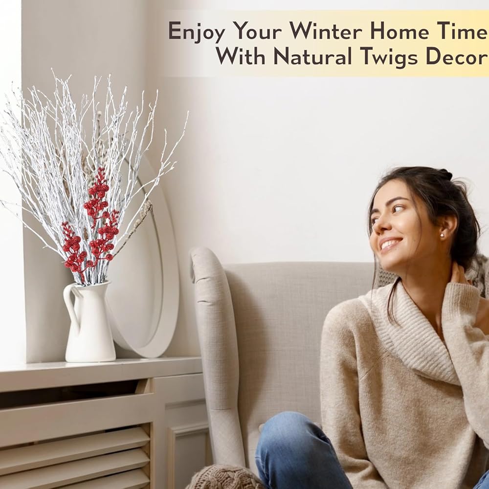 🎨 [مصنوعة بشكل فني] معززة بلمسة نهائية بيضاء باستخدام طرق صديقة للبيئة، هذه الأغصان تنضح بأجواء شتوية رومانسية، مما يضمن سلامة عائلتك والبيئة.