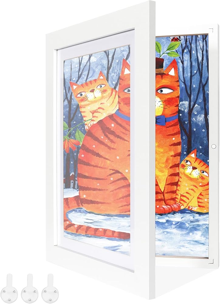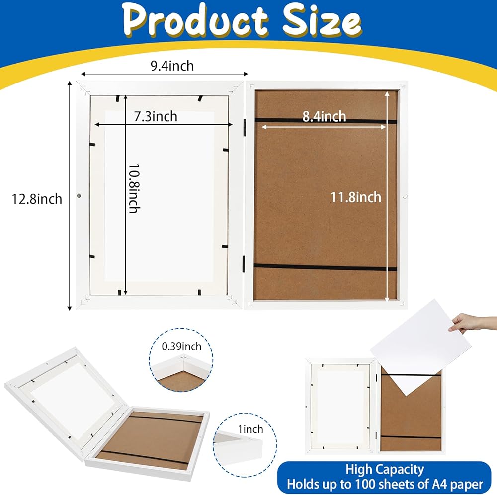 【صور صور عالية السعة】إطارات الأعمال الفنية للأطفال القابلة للتغيير مثالية للحروف أو الأعمال الفنية ذات الحجم المماثل. الحد الداخلي للإطار هو 8.4 بوصة × 11.8 بوصة (A4) أو عمل فني أصغر، بعمق 0.39 بوصة، والحد الخارجي للإطار الفني هو 12.8 بوصة × 9.4 بوصة، وحدود العرض 10.8 بوصة × 7.3 بوصة. إطارات فنية للأطفال تحتوي على 50-150 قطعة من الورق بحجم A4 من الأعمال الفنية للأطفال حسب سمك الورق، مما يلبي احتياجاتك للتخزين والعرض.