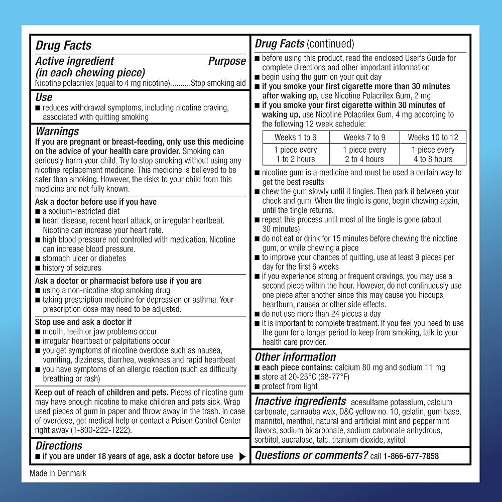 • ACTIVE INGREDIENT: This product contains nicotine polacrilex, a stop smoking aid, which compares to the active ingredient in Nicorette Gum