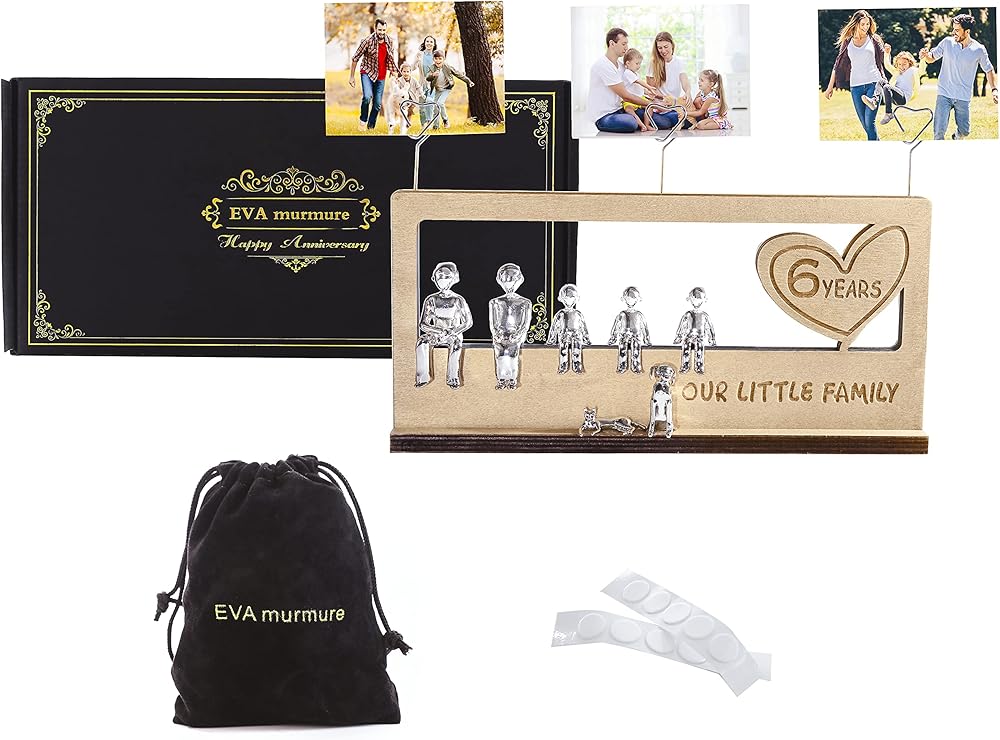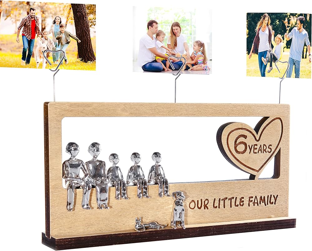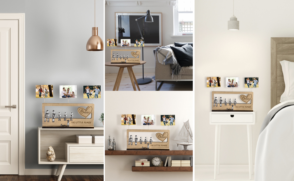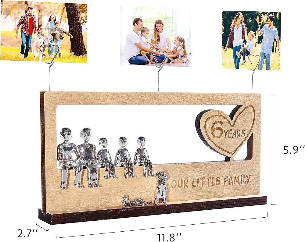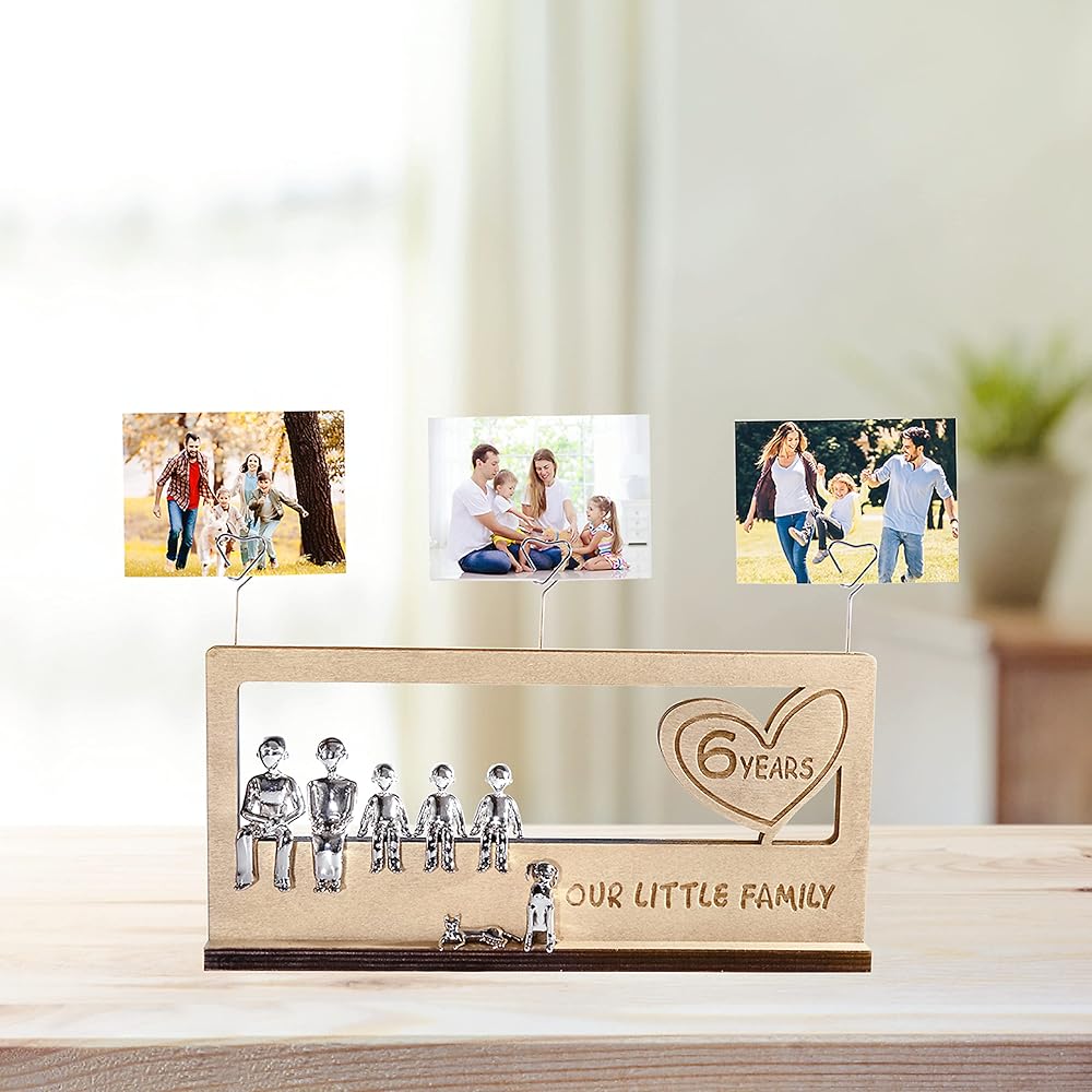 مقاس مثالي - يبلغ مقاس إطار هدايا الذكرى السنوية السادسة لعائلتنا الصغيرة حوالي 11.8 × 5.9 انش وارتفاع البالغين 3 انش وارتفاع الطفل 2.3 انش وارتفاع الكلب 1.7 انش وعرض القطط 1.7 انش. يسمح لك الحجم المثالي بالتباهي بوضوح بالذكرى السنوية السادسة الجميلة