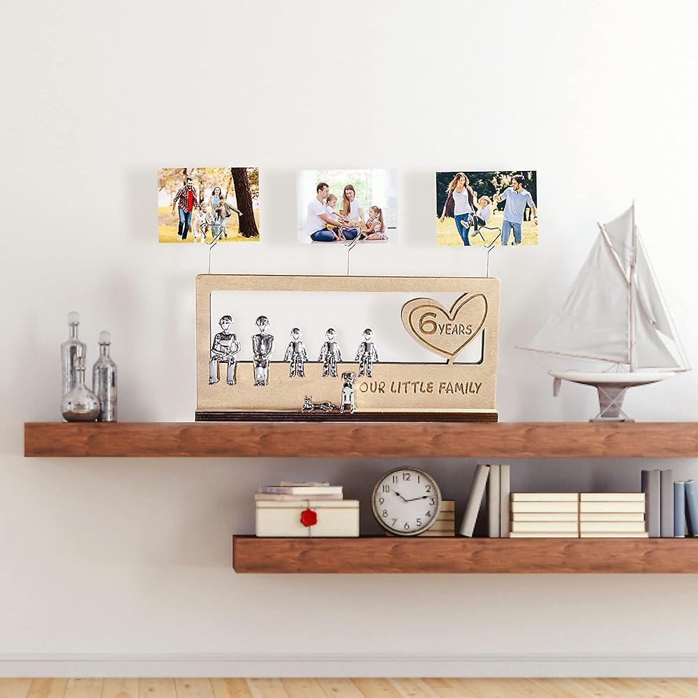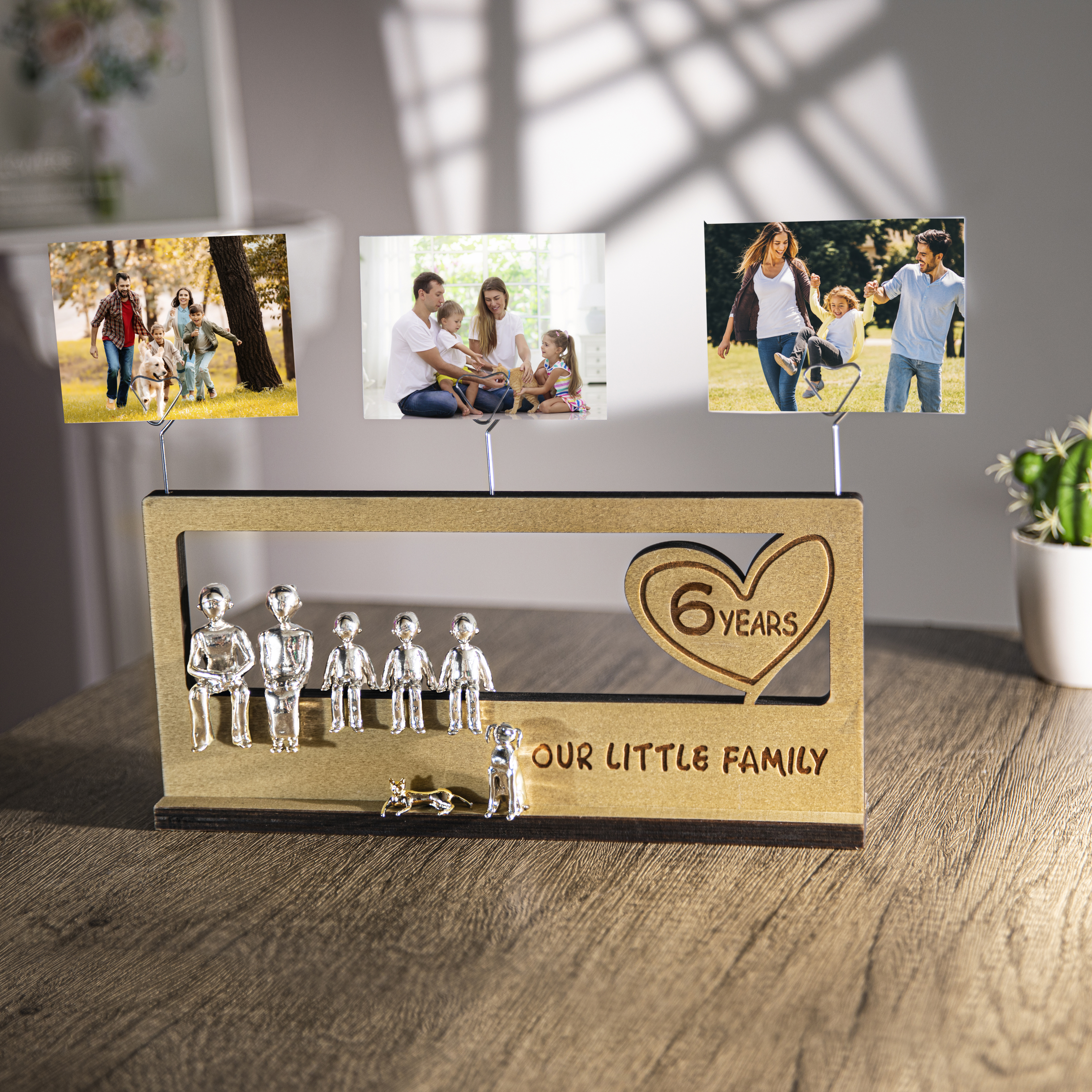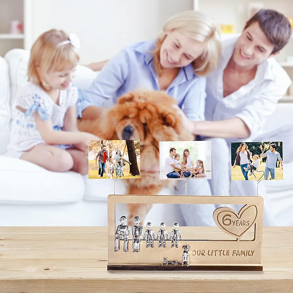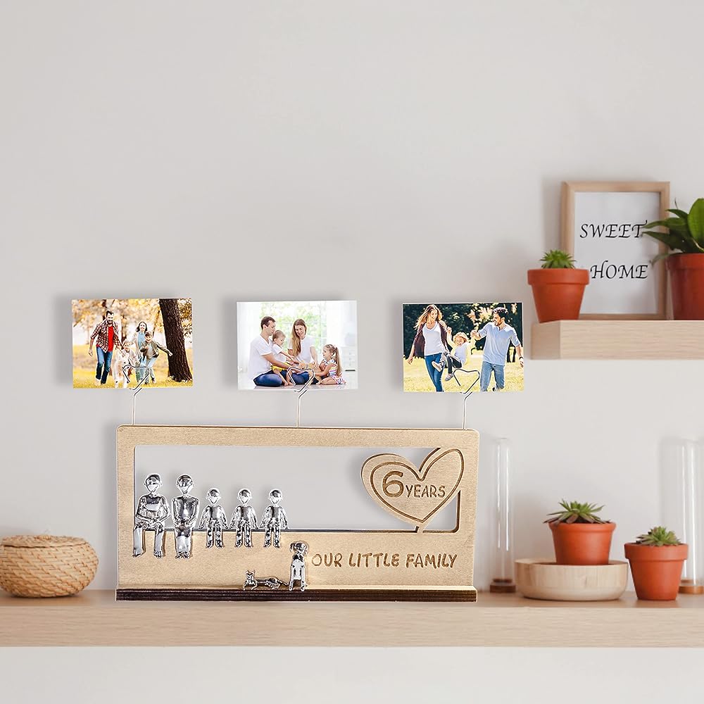 مقاس مثالي - يبلغ مقاس إطار هدايا الذكرى السنوية السادسة لعائلتنا الصغيرة حوالي 11.8 × 5.9 انش وارتفاع البالغين 3 انش وارتفاع الطفل 2.3 انش وارتفاع الكلب 1.7 انش وعرض القطط 1.7 انش. يسمح لك الحجم المثالي بالتباهي بوضوح بالذكرى السنوية السادسة الجميلة