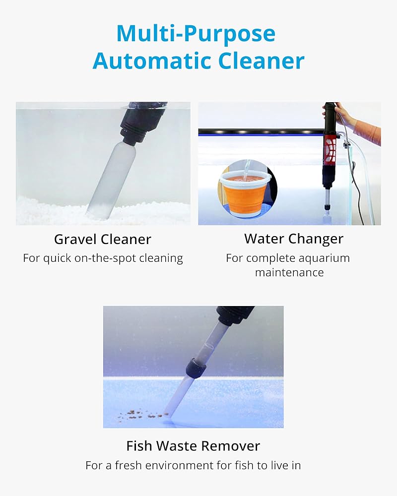 منظف الحصى الاوتوماتيكي من نيكرو، منظف حوض السمك الكهربائي، مستخرج الحمأة 2 في 1 للخزانات المتوسطة والكبيرة