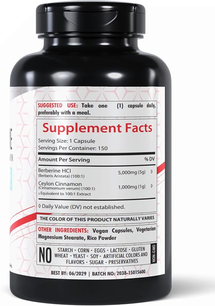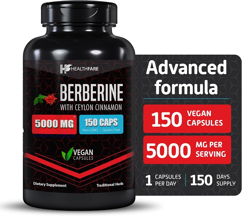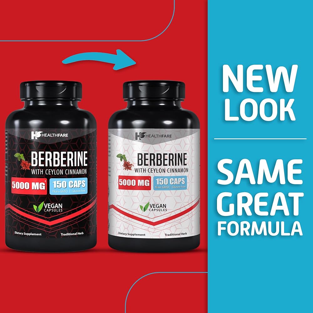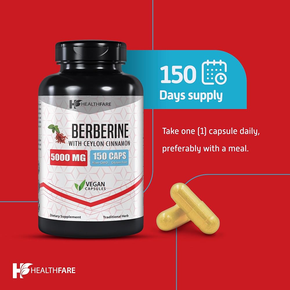 OUTSTANDING VALUE: Each bottle of HealthFare Berberine with Ceylon Cinnamon boasts a potent 5000mg per capsule, totaling 150 capsules. Compare and see the unbeatable value against other brands with less potent formulas.