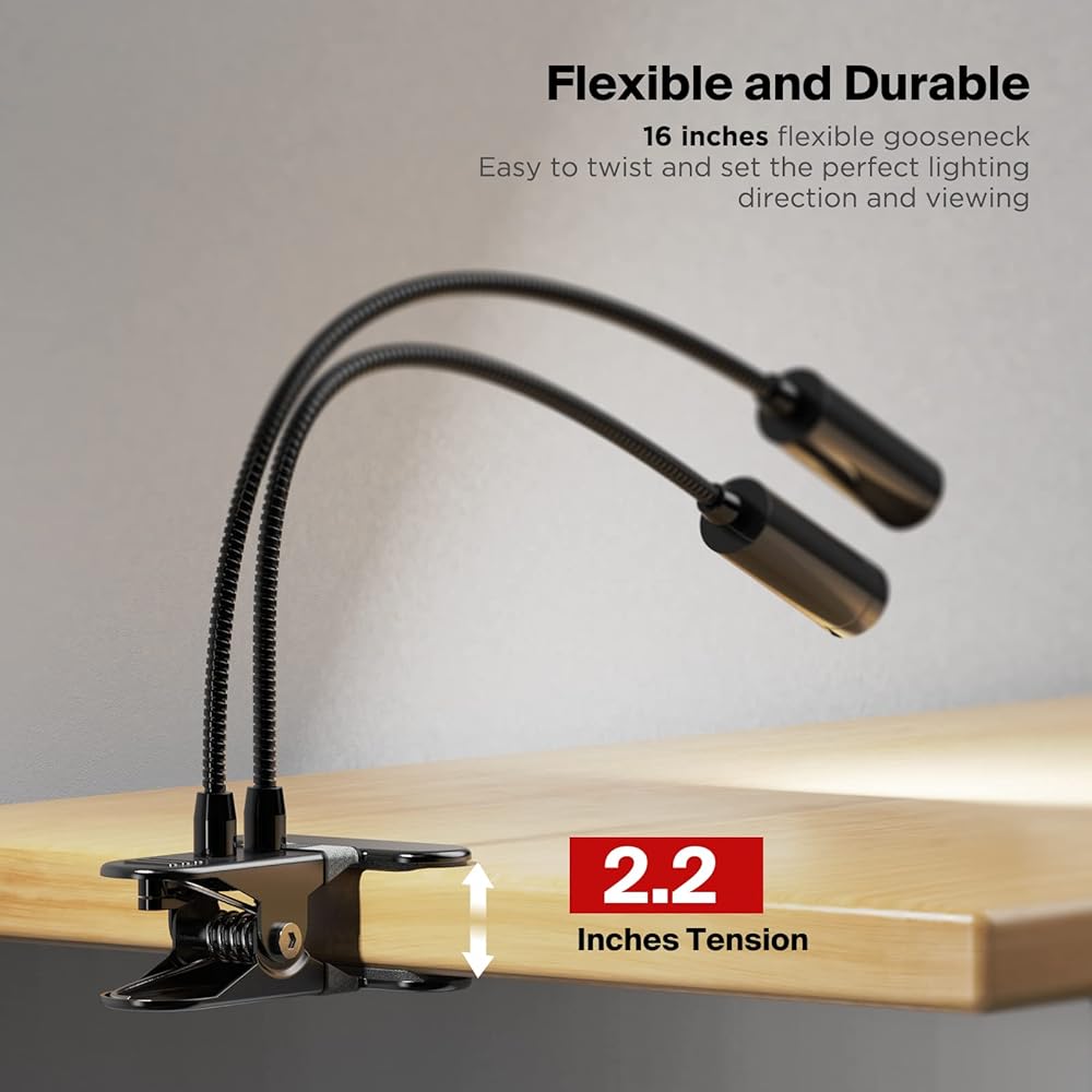 • Microscope Lamp with 360° Flexible Gooseneck-Durable flexible gooseneck allows you to adjust your clip light with ease and to direct the light wherever you want. Light up any dim space by clip-on the lamp