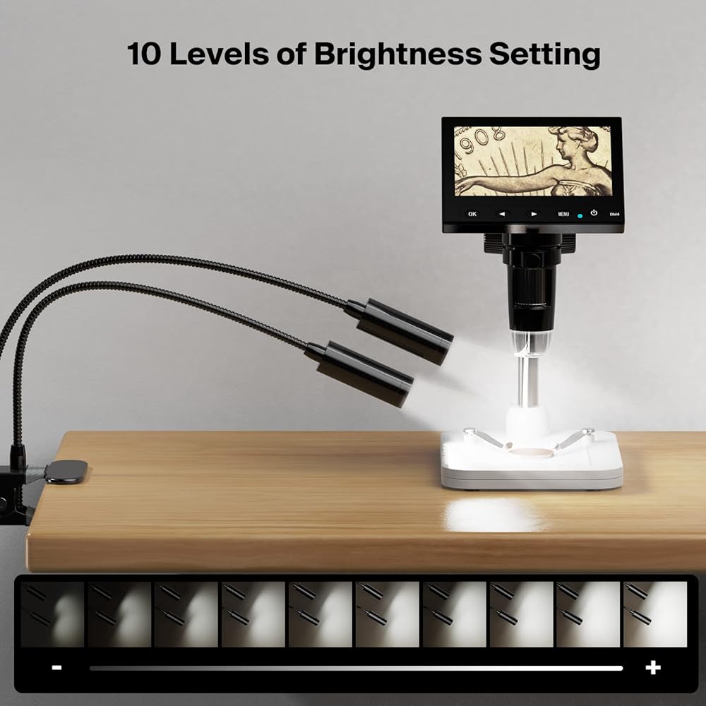 Gooseneck Microscope Auxiliary Lights Compatible with All Digital Microscopes, 360° Flexible 10 Levels Adjustable Brightness