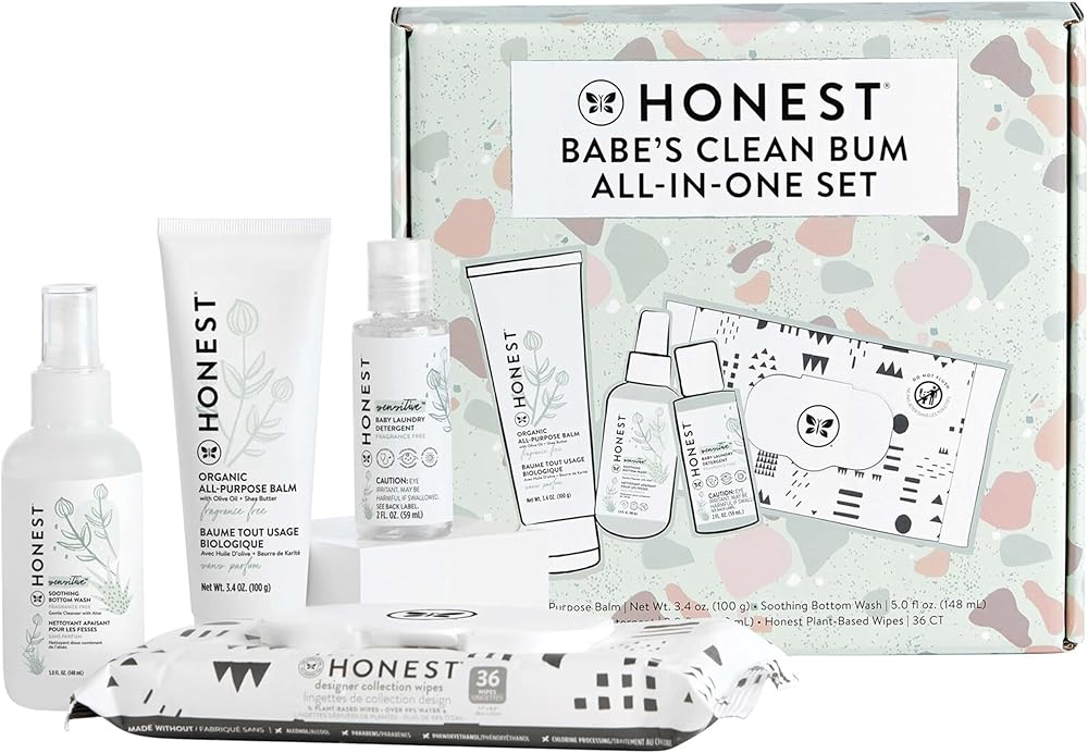 Babe's first mess? Don't stress! These starter essentials help make diaper changing a breeze by soothing + cleaning your babe's bum. They're all fragrance free, making them perfect for lil' one's sensitive skin. And if a changing disaster does happen (don't worry, we get it), our baby laundry detergent has your back! Perfect for cleaning any oopsies. This clean-up starter set is perfect for an upcoming baby shower + expecting mama!MADE WITHOUT (Honest Plant-Based Baby Wipes): Alcohol, Parabens, Chlorine Processing, FragrancesMADE WITHOUT (Soothing Bottom Wash): SLS, PEGs, Phthalates, Phosphates, Fragrances and Retinyl PalmitateMADE WITHOUT (Organic All-Purpose Balm): Petrolatum, Phthalates, Dyes, Synthetic Fragrances, Mineral Oil and LanolinMADE WITHOUT (Baby Laundry Detergent): MIT/BIT, Fragrances, Phthalates, Optical Brighteners and SLS/SLES