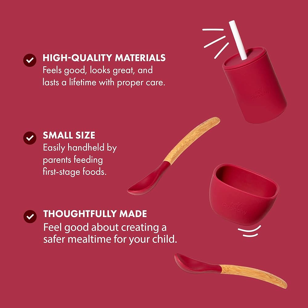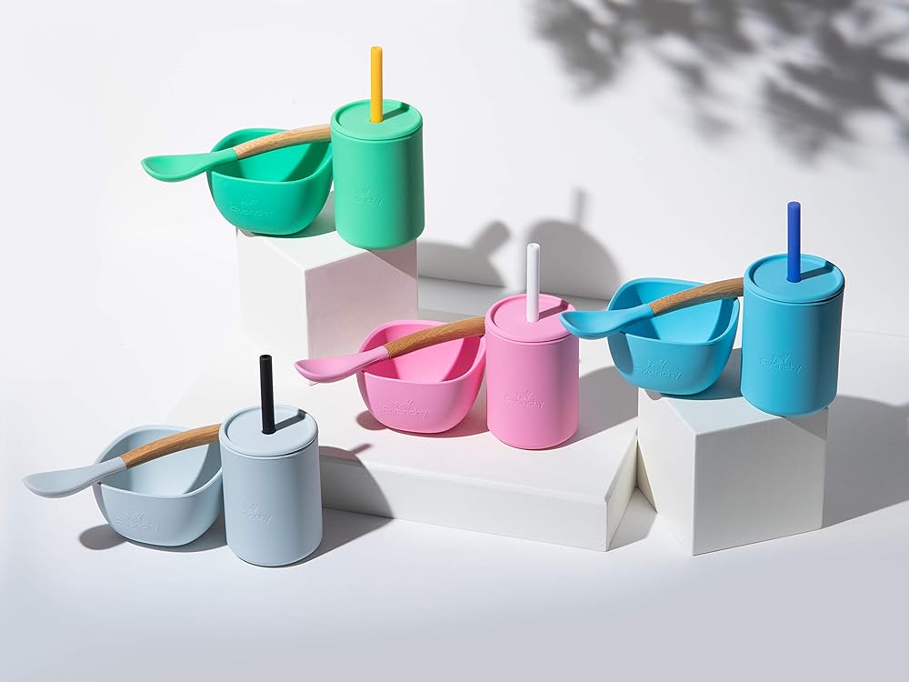 • بيتيت: هل حان الوقت لبدء طفلك بتناول الأطعمة الصلبة؟ مجموعة مجموعات Avanchy's La Petite الأساسية المصنوعة من السيليكون تقول: "Oui!" تشتمل مجموعة الأطباق هذه على وعاء صغير من السيليكون وكوب سيليكون وملاعق أطفال من الخيزران.
