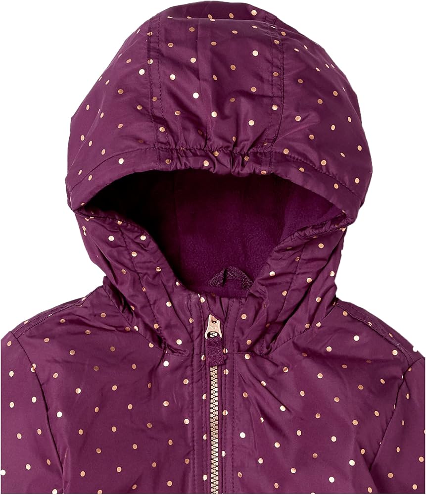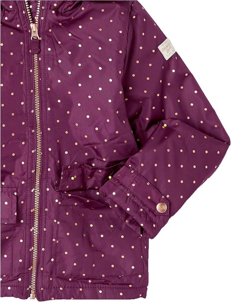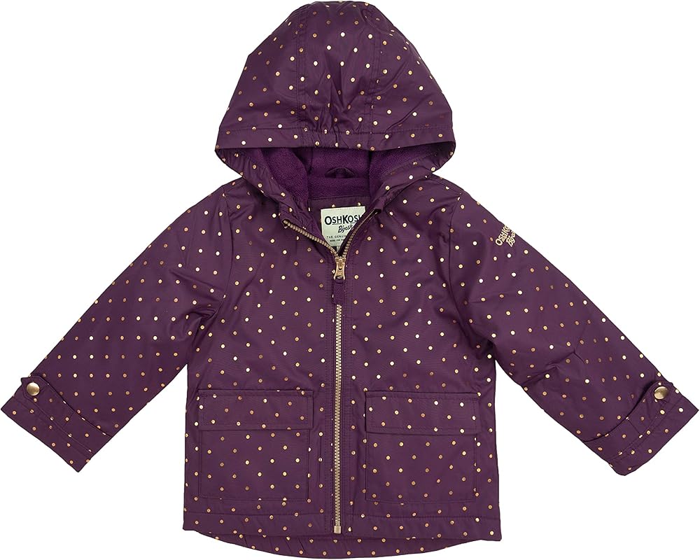 Perfect toddler girl midweight winter jacket that you and your baby girl will love! Keeps them warm on a cold winter day and has all of the features you expect in an OshKosh B'Gosh jacket including an attached hood, fleece lining, full zip front, two pockets, and stylish metallic butterfly print design