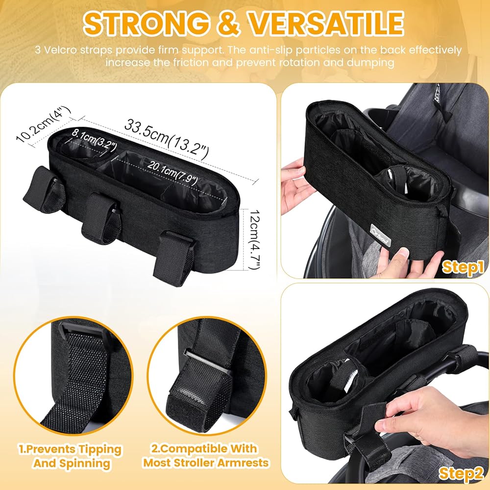 💪 𝐄𝐗𝐂𝐄𝐋𝐋𝐄𝐍𝐓 𝐒𝐓𝐀𝐁𝐈𝐋𝐈𝐓𝐘: Orzbow Upgraded Stroller Tray features three widened Velcro Straps with inner silicone anti-slip particles,ensuring increased friction and stability,which is equipped with a 𝟐𝐦𝐦 𝐭𝐡𝐢𝐜𝐤 𝐏𝐏 𝐛𝐨𝐚𝐫𝐝 around the edges and bottom,and filled with 𝟓𝐦𝐦 𝐩𝐞𝐚𝐫𝐥 𝐜𝐨𝐭𝐭𝐨𝐧 for excellent support.
