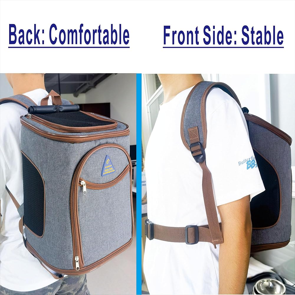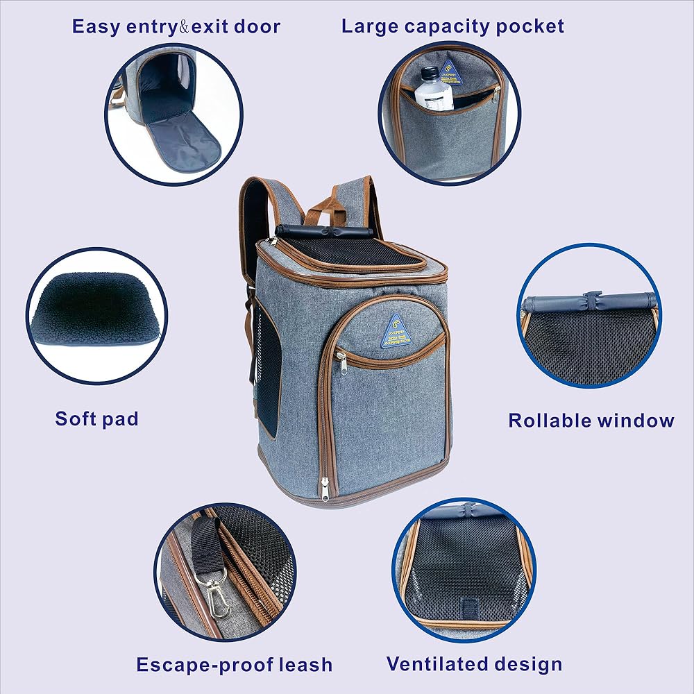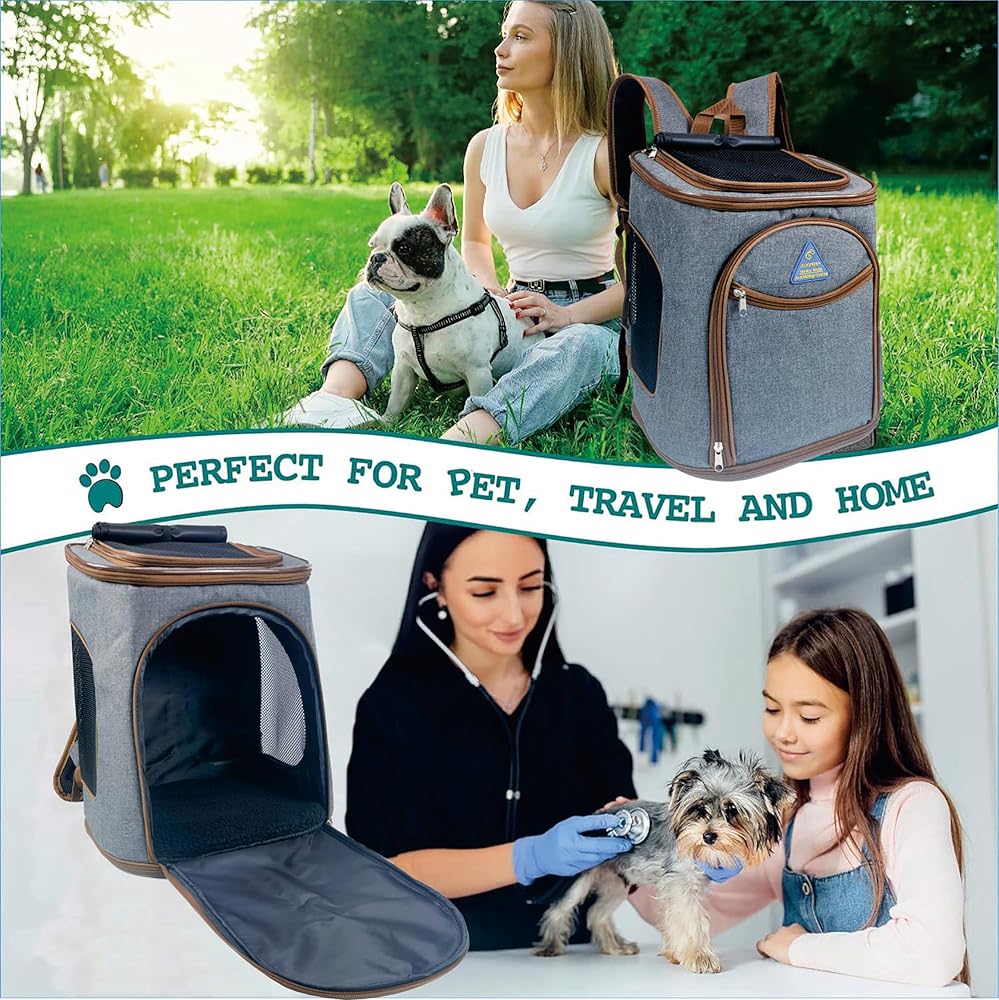 حقيبة ظهر للقطط، حقيبة ظهر لحمل الكلاب للحيوانات الأليفة الصغيرة والمتوسطة، حقيبة ظهر للسفر للجرو ناعمة للسفر في الهواء الطلق والمشي لمسافات طويلة والتخييم، حقيبة حمل قابلة للطي معتمدة من شركات الطيران، جيدة التهوية، قابلة للطي