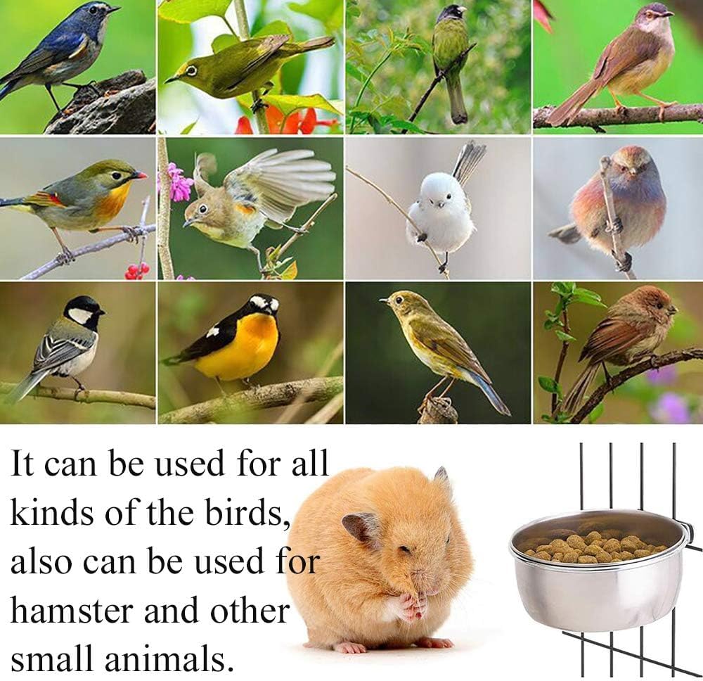 عبوة من كوبين لتقديم الطعام للطيور مع حامل المشبك من كاثسون، وعاء تعليق لطعام الببغاوات وقفص الماء من الفولاذ المقاوم للصدأ وعاء طعام الباكاتيل والكونور بودجيز لوف بيرد فينش