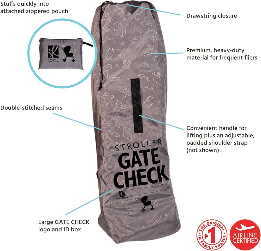 PEACE OF MIND - Large GATE CHECK logo and ID box for your name ensure your stroller is safely returned to you at the airplane gate. Webbing handle for easy lifting. NOT RECOMMENDED FOR BAGGAGE CHECK