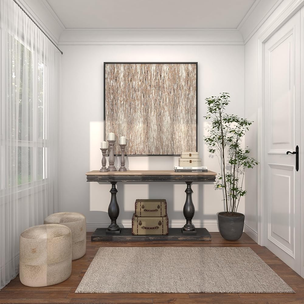 WHITE AND GRAY POLISHED FINISH: Highlights a distressed gray wood with a whitewashed finish