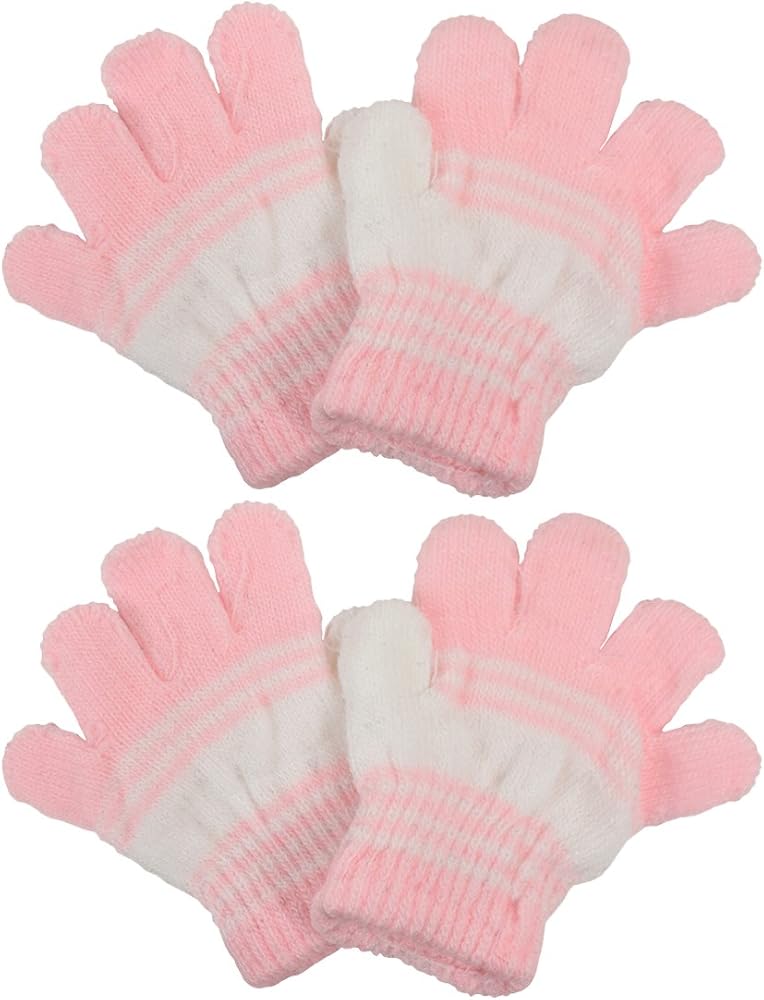The package comes with multiple pairs of magic knit striped gloves for infants and toddlers. These magic stretchy gloves are great for boys and girls costume accessory, field practice or winter warm gloves for a chilly day. They are comfortable and durable. These soft knit gloves are perfect for childrens hands and will keeps them warm and protected from harsh weather.