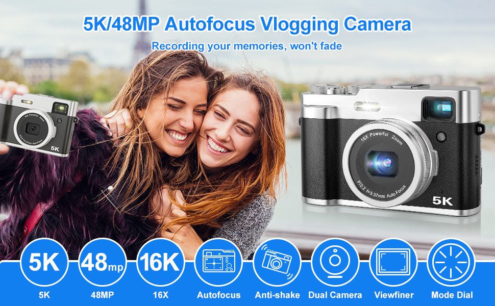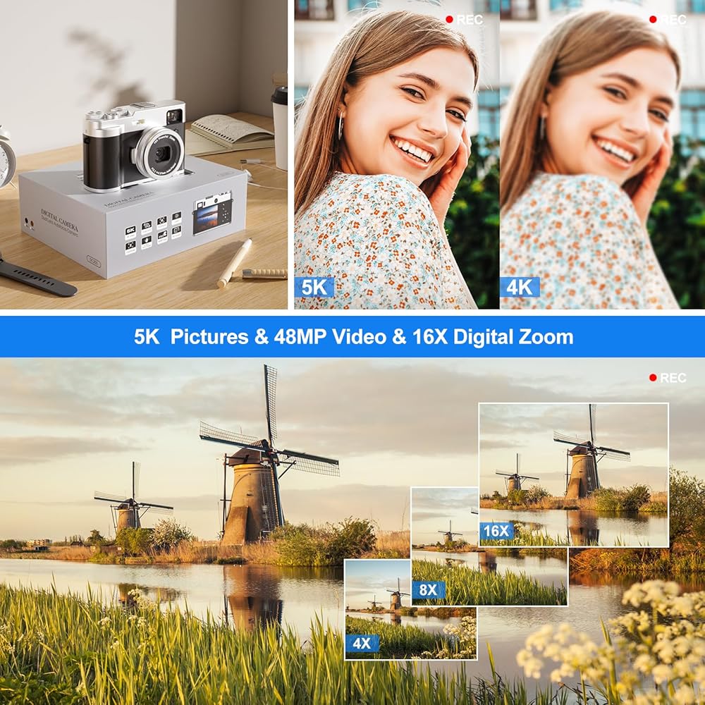 【أحدث تركيز تلقائي للكاميرا الرقمية لعام 2024】- تسجل كاميرا تسجيل الفيديو مقاطع فيديو بدقة 5K و30 إطارًا في الثانية وتلتقط صورًا مذهلة عالية الدقة بدقة 48 ميجابكسل مع تركيز تلقائي جيروسكوب متطور بستة محاور، مما ينتج صورًا حادة وواضحة. تعد الكاميرات المزدوجة مثالية لعشاق التصوير الفوتوغرافي والفيديو، كما أن التقاط الصور والكاميرا الخلفية بدقة 12 ميجابكسل تساعد كثيرًا في التقاط الصور الشخصية. حتى لو كنت جديدًا في التصوير الفوتوغرافي، يمكنك التقاط صور مذهلة بسهولة.