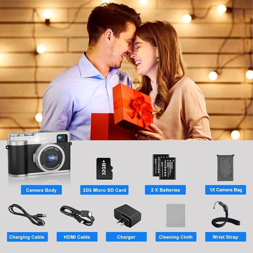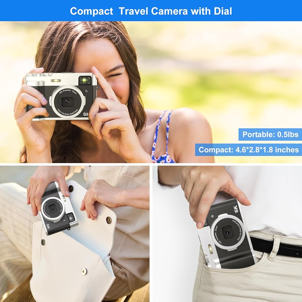 【كاميرا قديمة ومحمولة】- كاميرا الفيديو 5K ذات تصميم الربط الفضي والأسود أنيقة وجوية، مما يجعلها ملحقًا عصريًا لالتقاط صور عالية الجودة أثناء التنقل. كاميرا مدمجة تزن 0.5 رطل فقط، بقياس 4.6*2.8*1.8 بوصة، مما يجعلها خفيفة الوزن بشكل لا يصدق وسهلة الحمل.