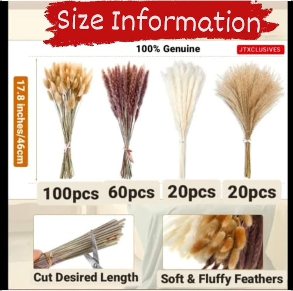 🎁【Everything You Get】The 200 Pcs pampas grass Set includes 100 pcs Bunny Tail, 60Pcs White Pampas grass, 20 Pcs Brown 20 Pcs Reed Grass, To add beauty to your living or working environment space, this short pampas grass is the perfect choice for you