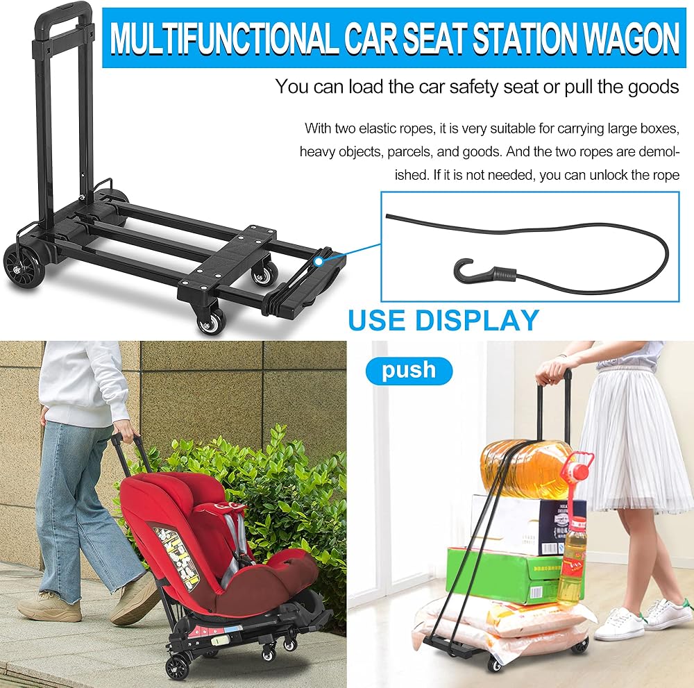 Multiple Uses AKOZLIN Car Seat Travel Cart also comes with two elastic ropes,No Need to Buy Extra One. Perfect for carrying large-size boxes, heavy stuff, packages, goods. And 2 cords are removable, if do not need, you can untie the cords.
